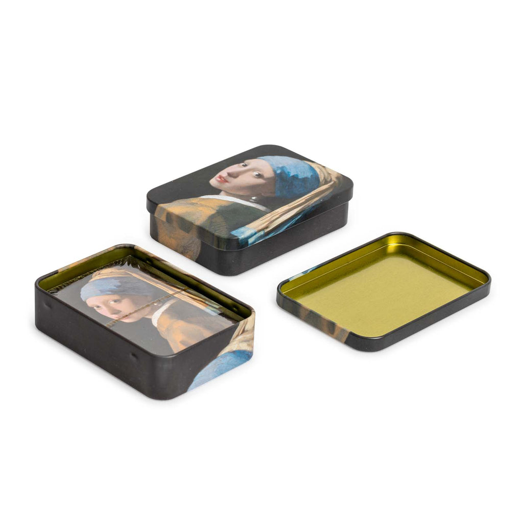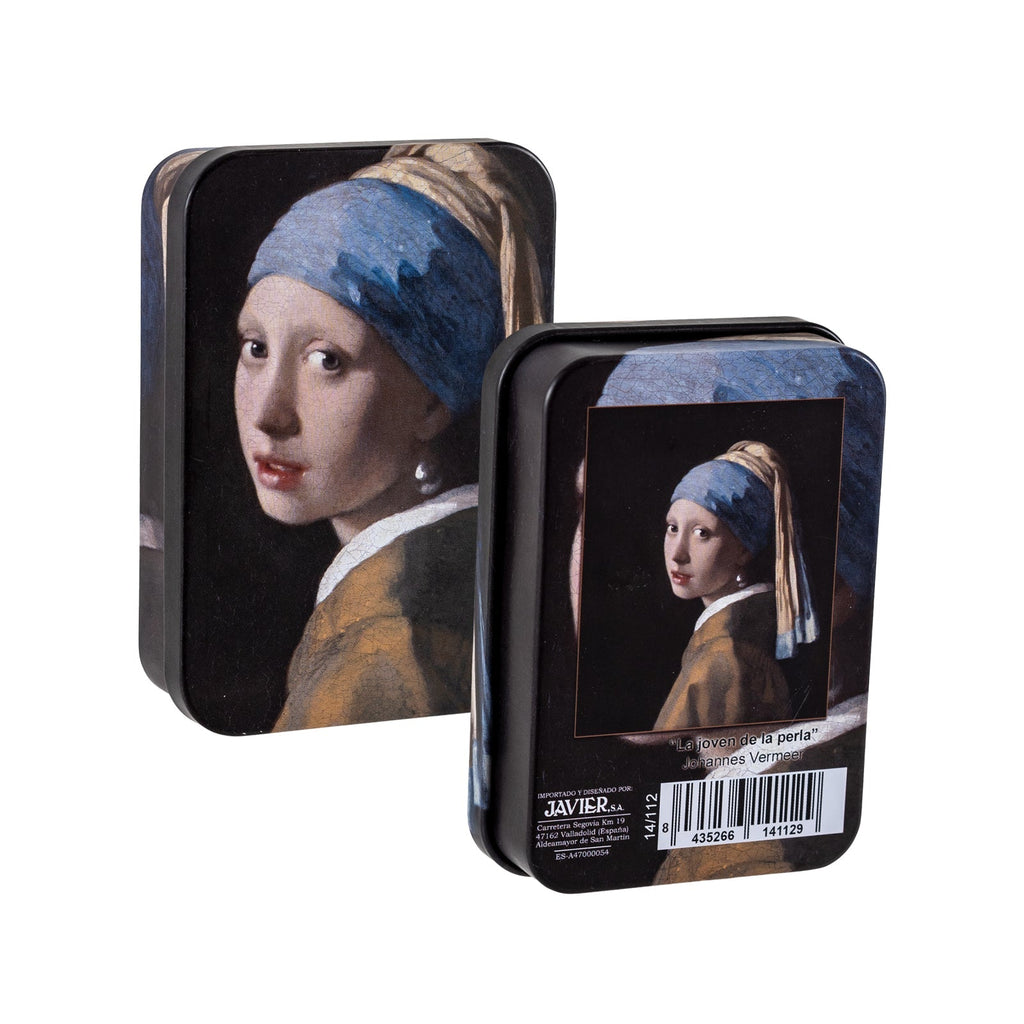 Se presentan en un estuche metálico con el mismo dibujo que el reverso de las cartas y cuenta con cierre a presión. Perfecto para que te puedas llevar tu baraja a cualquier lugar de forma segura.