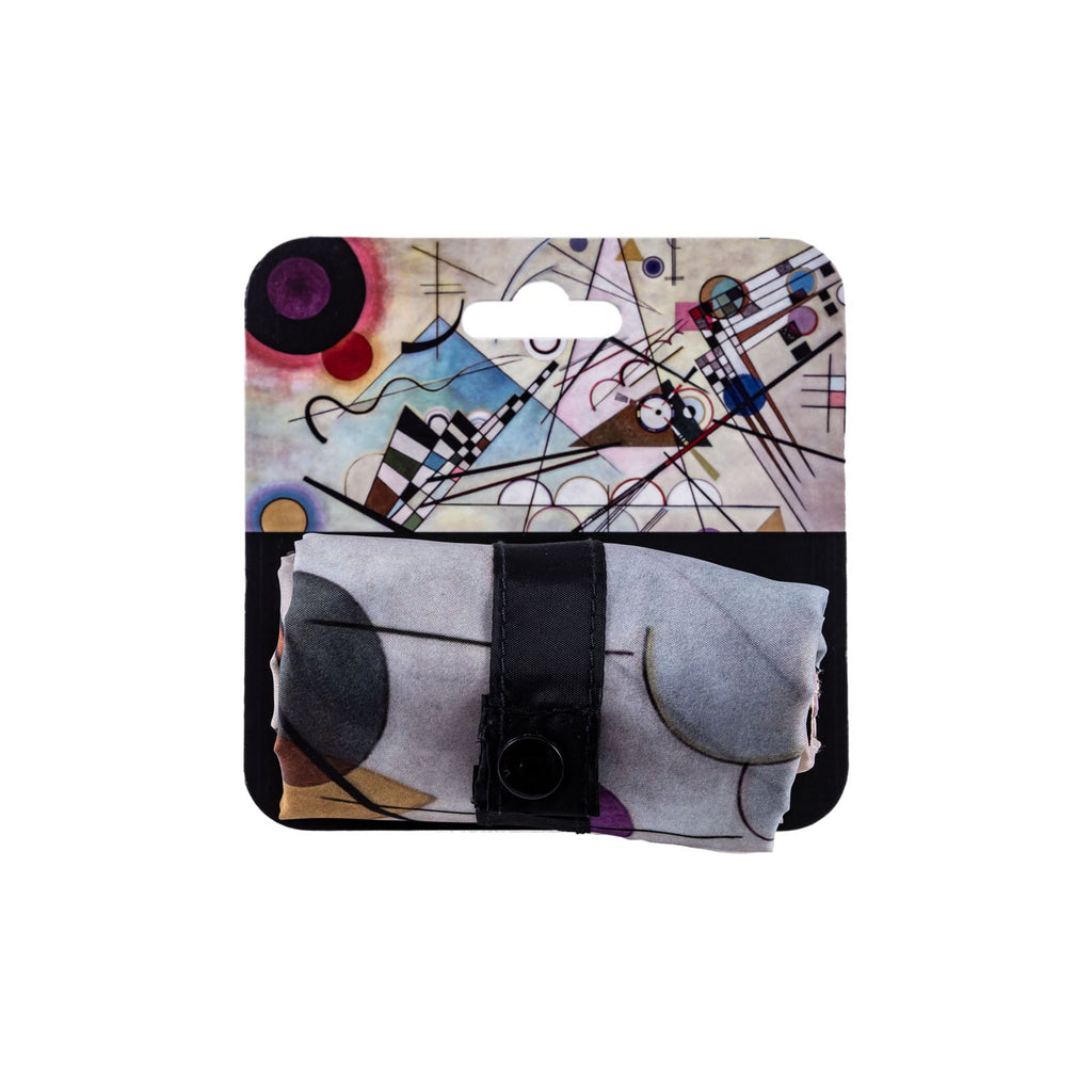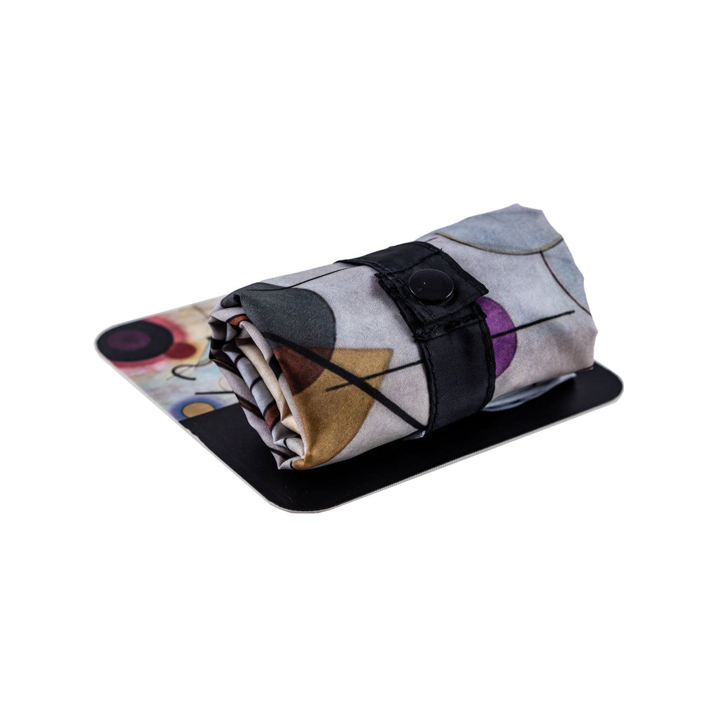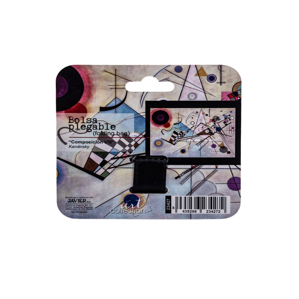 Bolsa plegable y reutilizable de la colección Kandinski de Javier. Al tener un tamaño reducido cuando está plegada, es ideal para llevarla siempre contigo a cualquier lugar: a la compra, en el coche, en el bolso, etc. y ¡dar un toque de color a tus días!