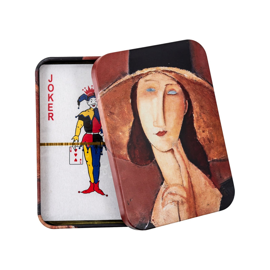 Baraja de Poker de la colección JAVIER Modigliani con un diseño exclusivo en el reverso. Está conformada por 52 cartas inglesas plastificadas para asegurar una mayor durabilidad y 2 cartas comodín.