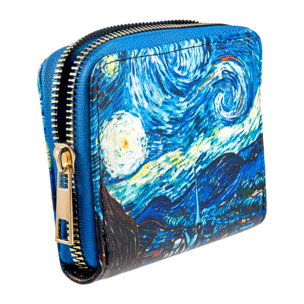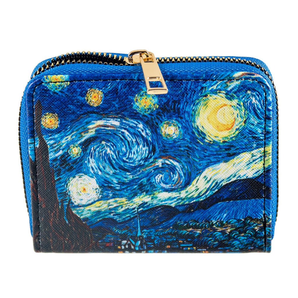 Monedero pequeño tipo cartera para mujer JAVIER Noche Estrellada con cierre de cremallera. Formato ideal para llevar en bolsos pequeños, riñoneras o mochilas ya que tiene un diseño muy compacto.