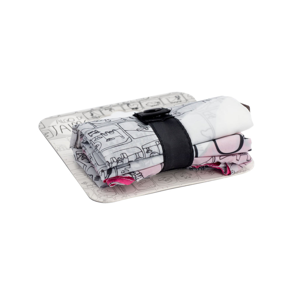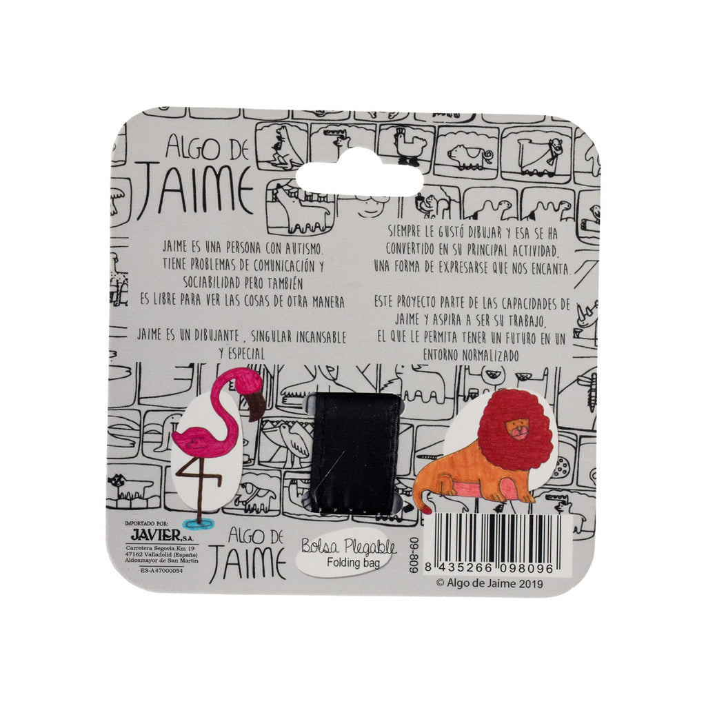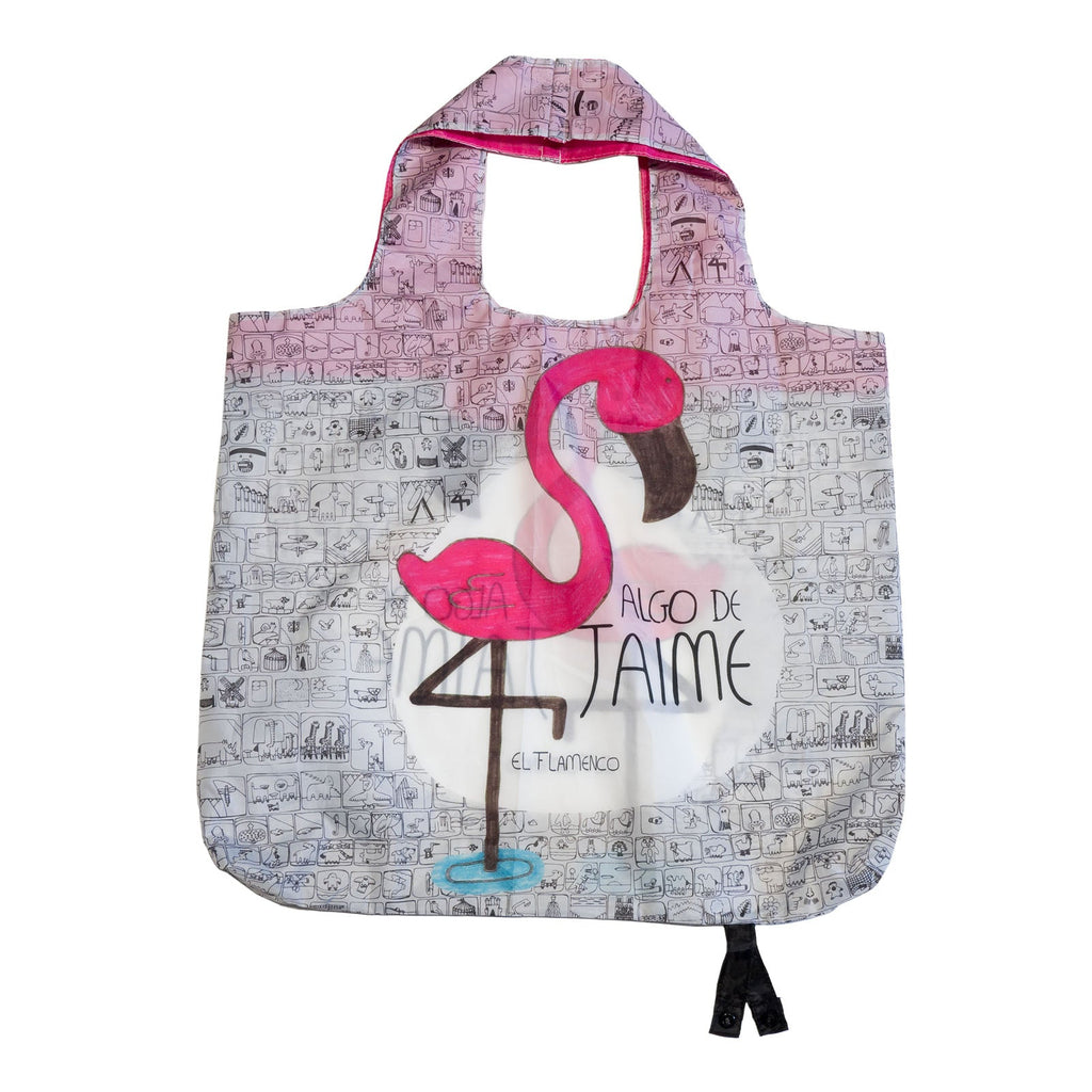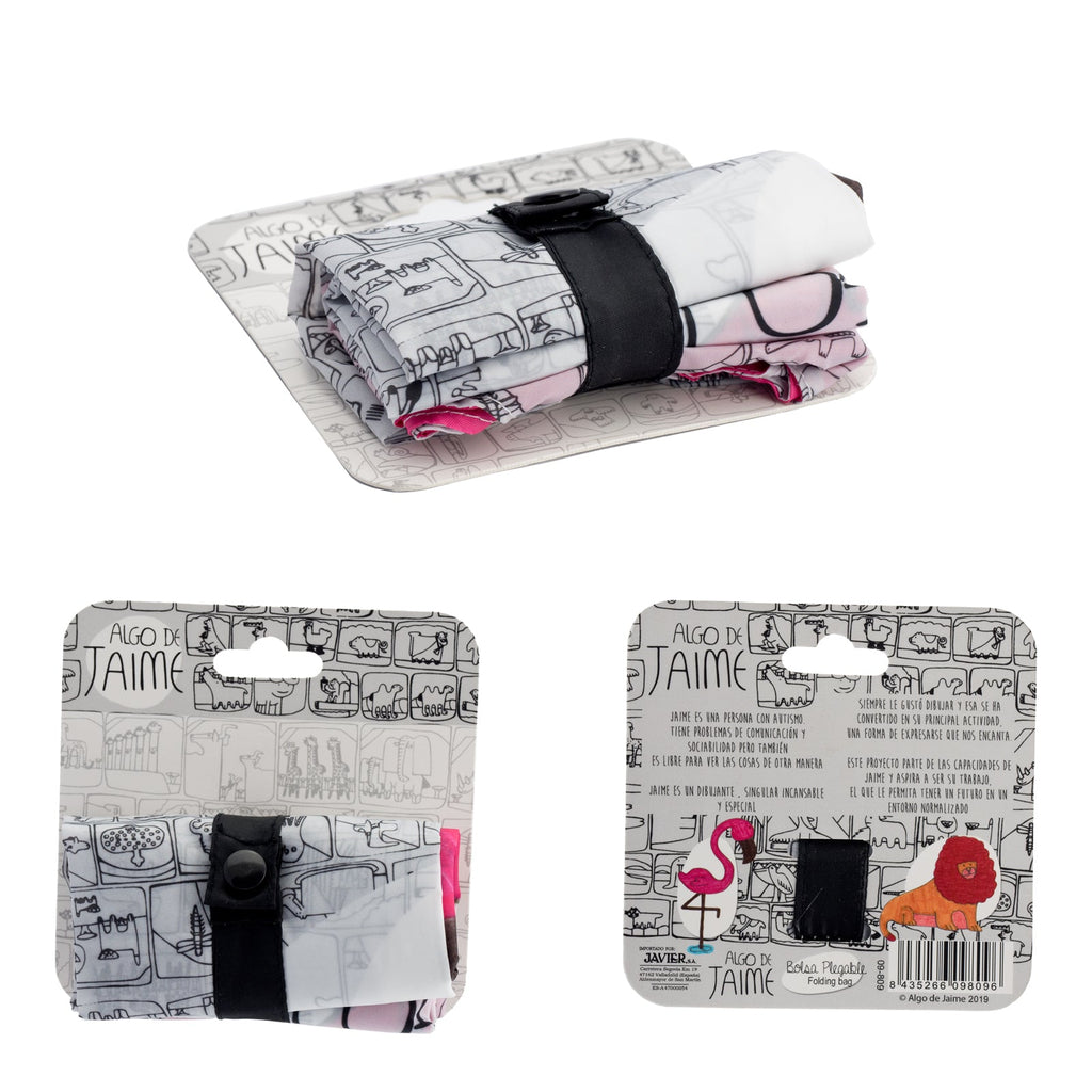 Bolsa plegable y reutilizable de la colección Algo de Jaime de Javier. Al tener un tamaño reducido cuando está plegada, es ideal para llevarla siempre contigo a cualquier lugar: a la compra, en el coche, en el bolso, etc. y ¡dar un toque de color a tus días!