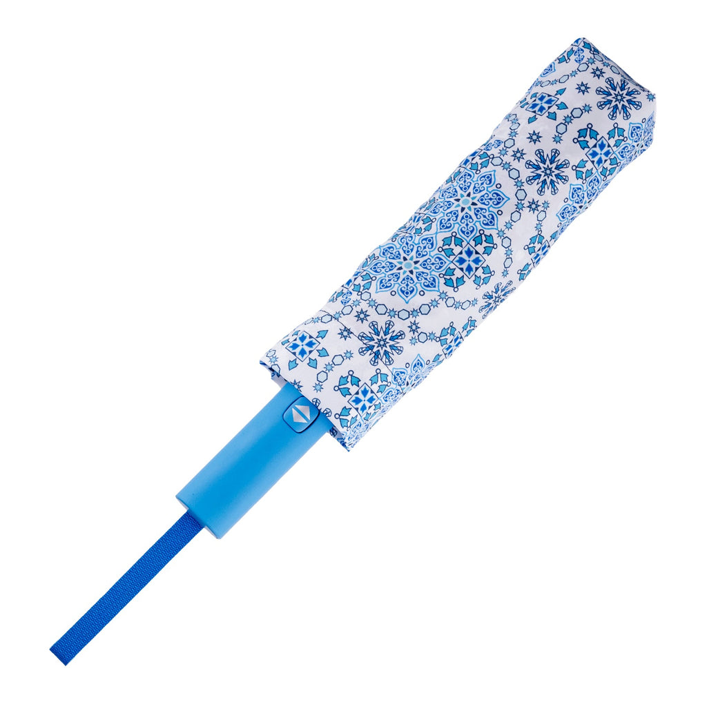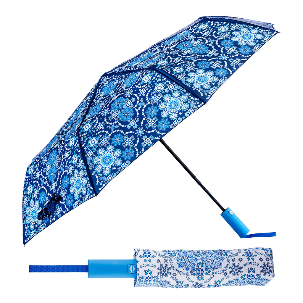 Nuevo paraguas plegable de apertura y cierre automatico con diseño Art Collection de Javier, incluye cinta para trasporte, funda para guardar y un mango de tacto suave muy comodo de llevar. Una vez abierto su diametro de 100 cm permite una amplia proteccion de hasta dos personas.