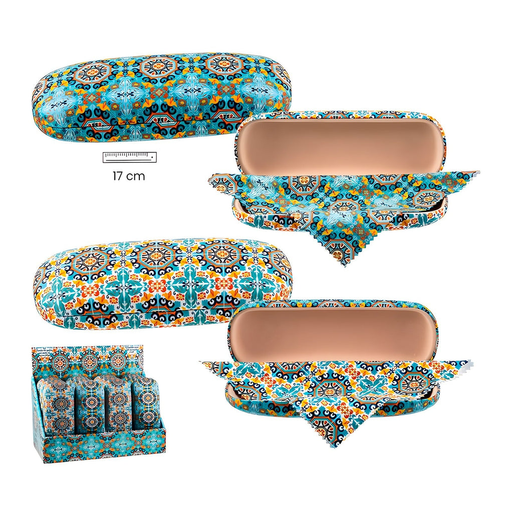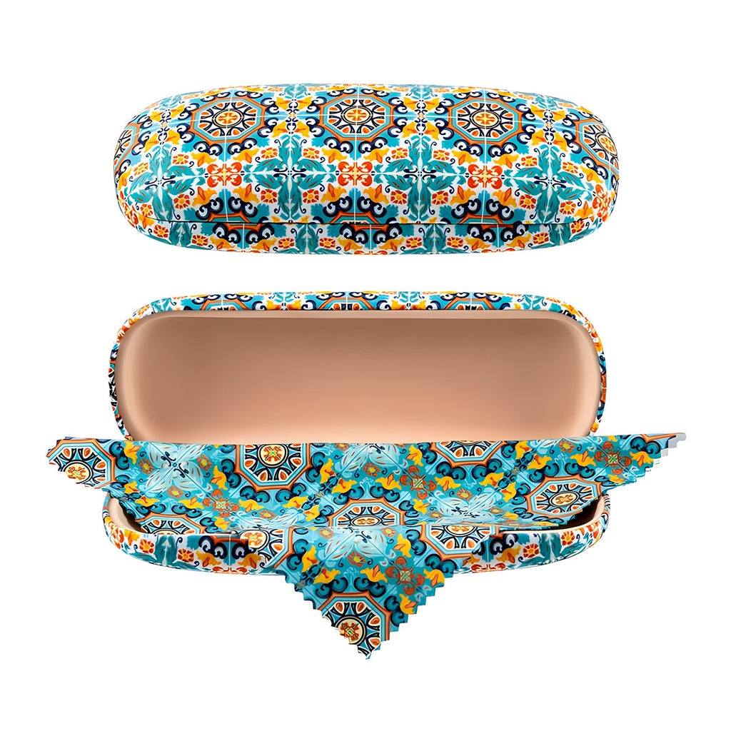 Funda para gafas rígida de la colección Azulejo Verde de Javier con acabado suave y cierre flex. Viene provista de un paño de microfibra a juego con la funda. Es ideal para que puedas llevar tus gafas siempre protegidas a cualquier lugar. Es ideal para regalo, su diseño no dejará indiferente a nadie.
