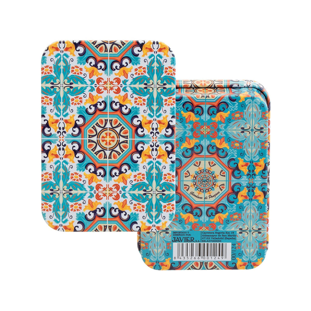 Baraja de Poker de la colección Azulejos de Javier con un diseño exclusivo en el reverso. Está conformada por 52 cartas inglesas plastificadas para asegurar una mayor durabilidad y 2 cartas comodín.