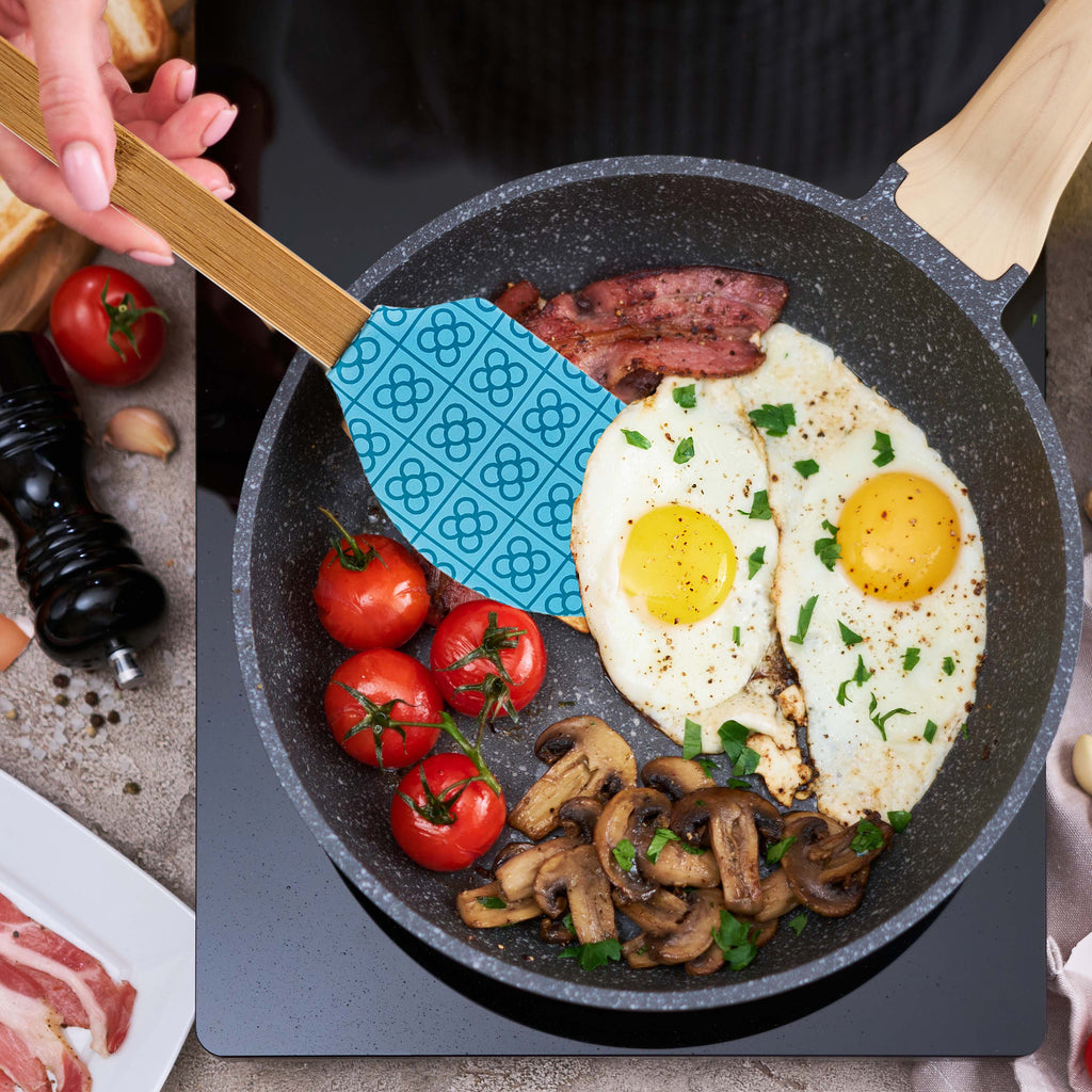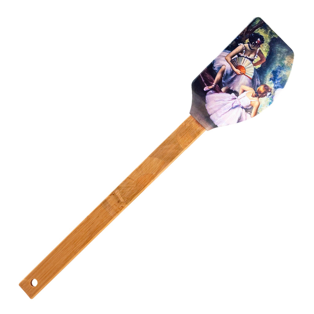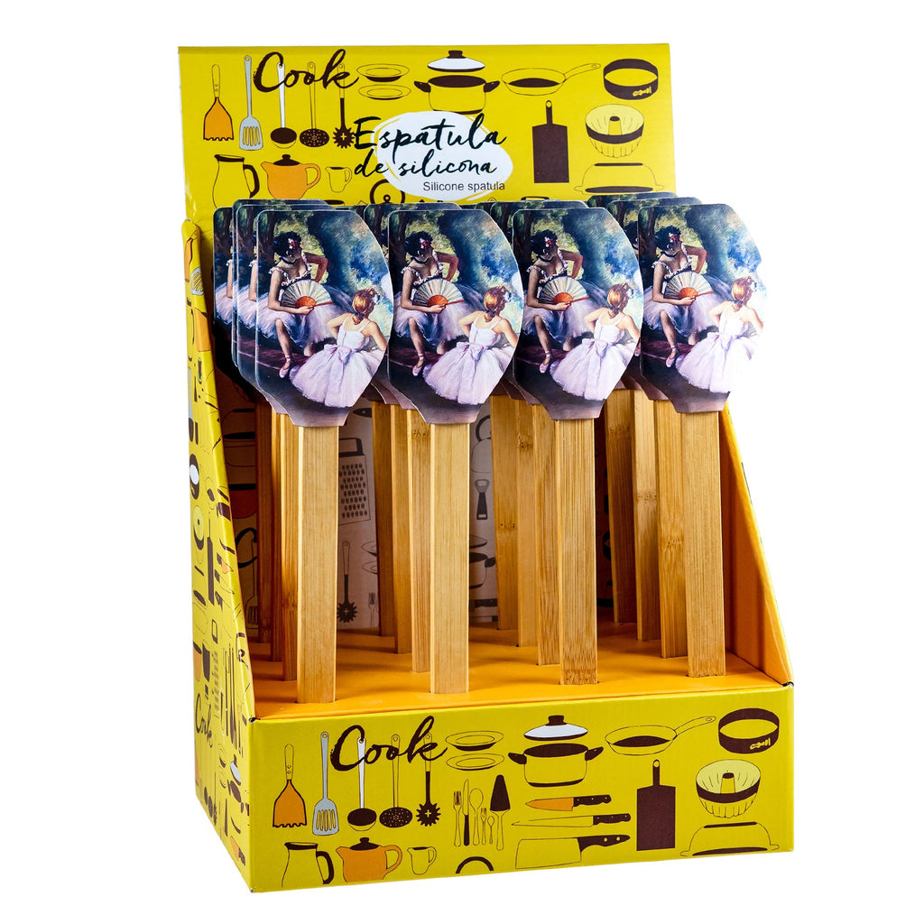 Espátula de cocina tipo lengua de gato de la colección Bailarinas Ballet de Javier. Está fabricada en silicona con mango de bambú, materiales muy resistentes, por lo que es un utensilio perfecto para tu día a día.