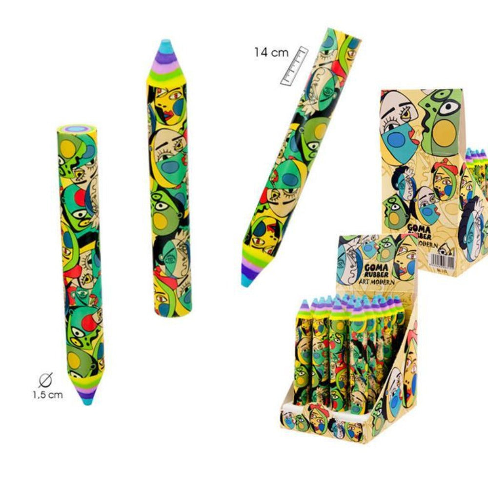 Divertidas gomas de borrar de tamaño extra-grande con un diseño único decorado con coloridos motivos de la arte moderno. Fabricado con materiales duraderos, ideal para llevar en el estuche en tu día a día.