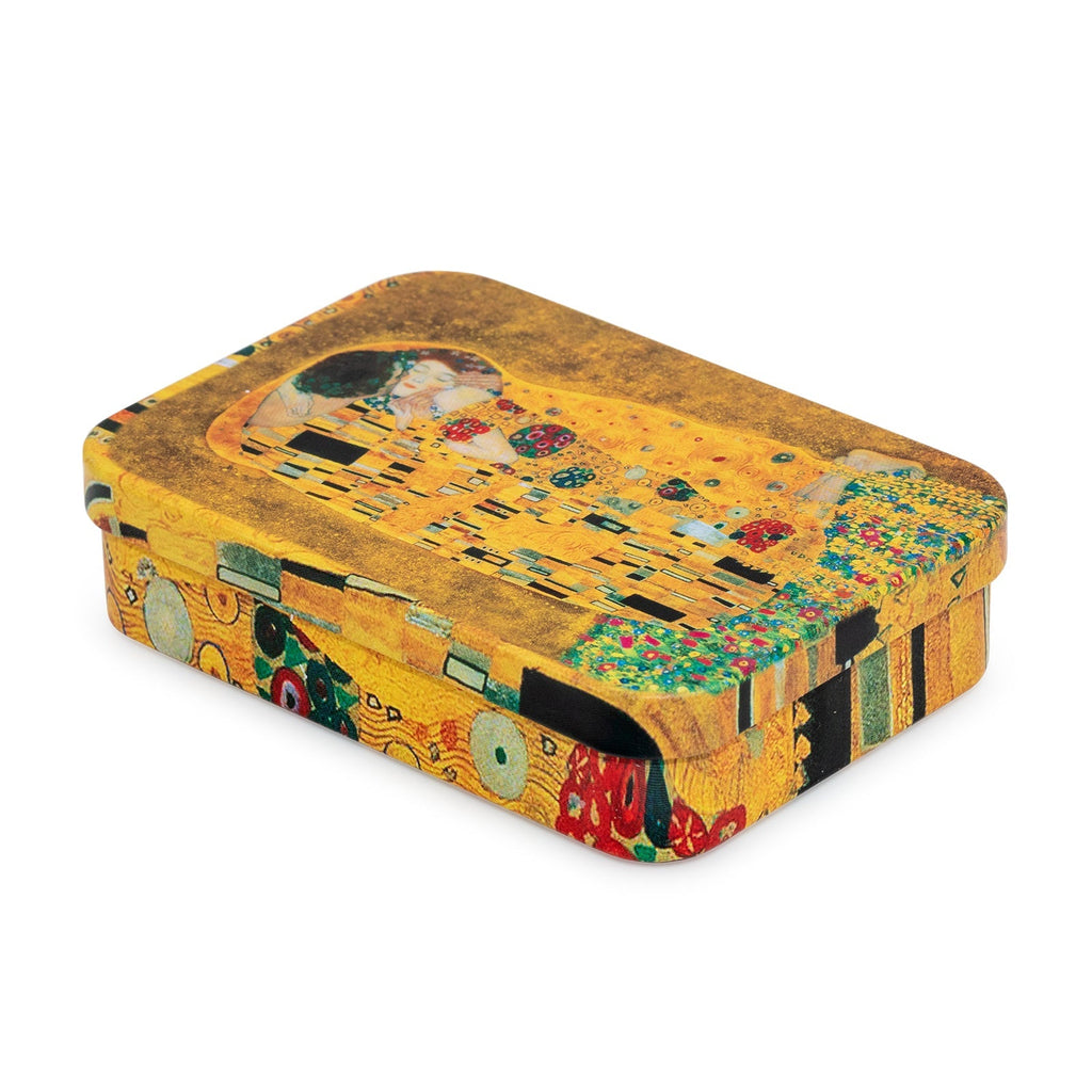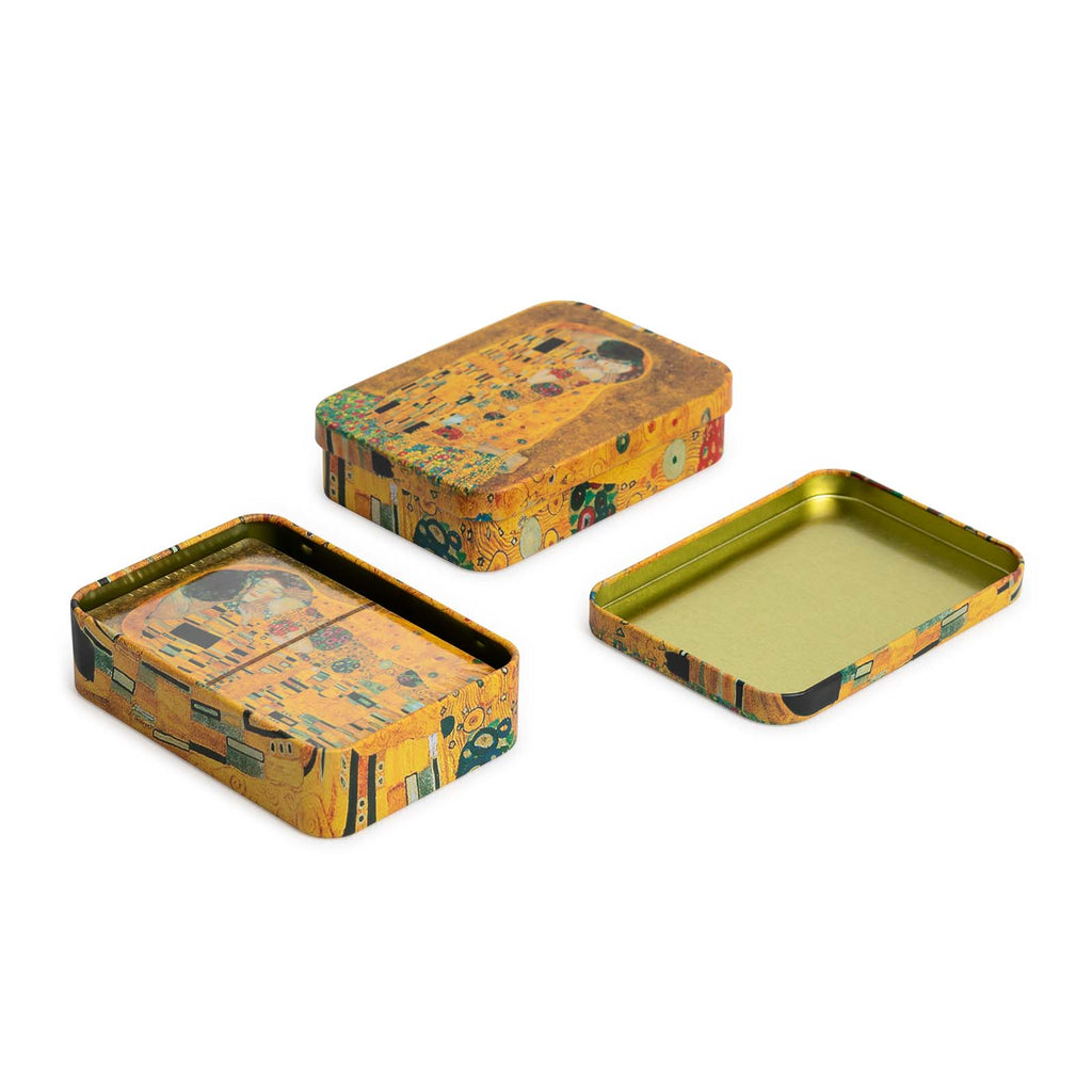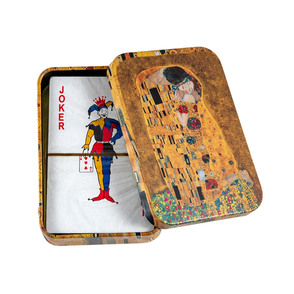 Se presentan en un estuche metálico con el mismo dibujo que el reverso de las cartas y cuenta con cierre a presión. Perfecto para que te puedas llevar tu baraja a cualquier lugar de forma segura.