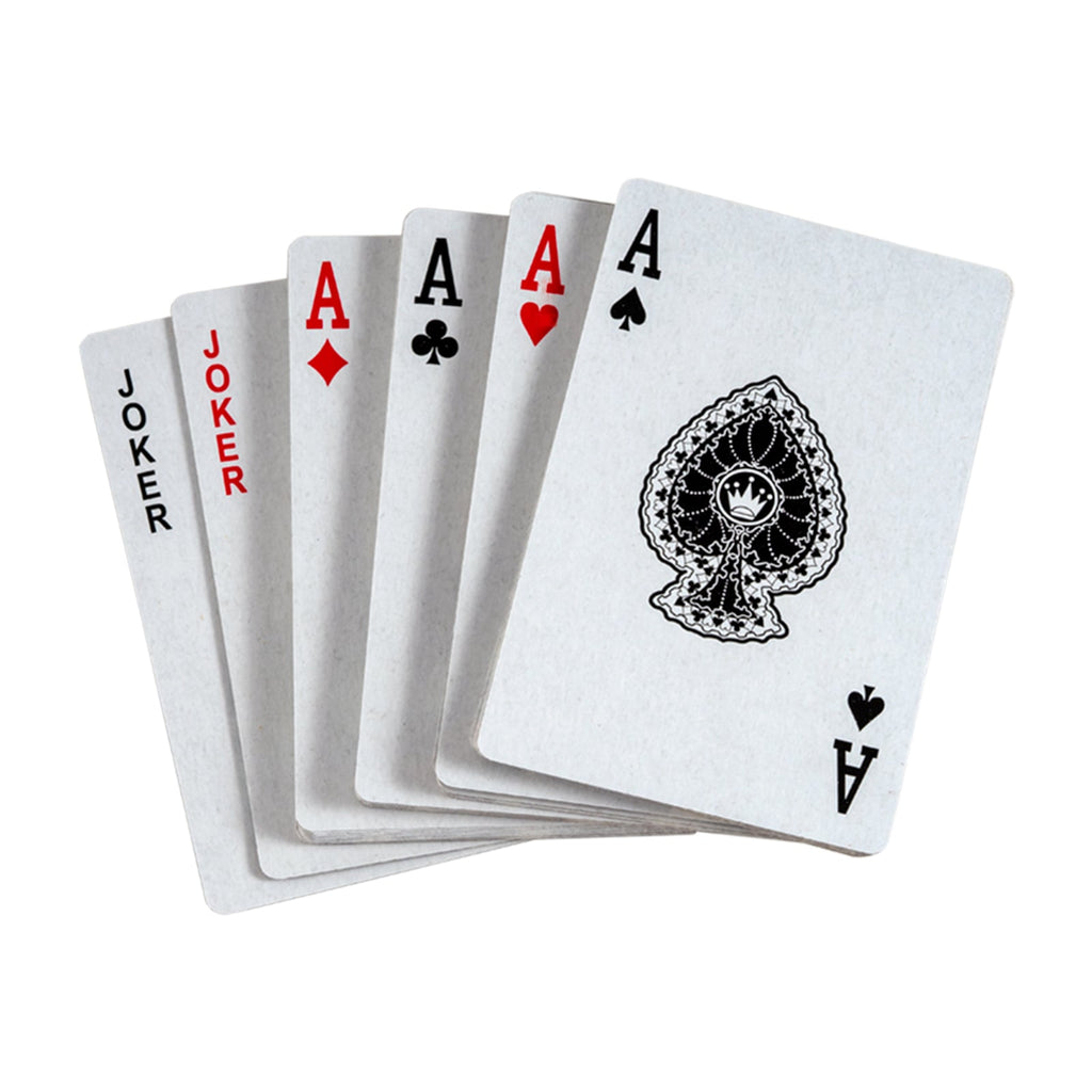 Baraja de Poker de la colección El Beso de Javier con un diseño exclusivo en el reverso. Está conformada por 52 cartas inglesas plastificadas para asegurar una mayor durabilidad y 2 cartas comodín.