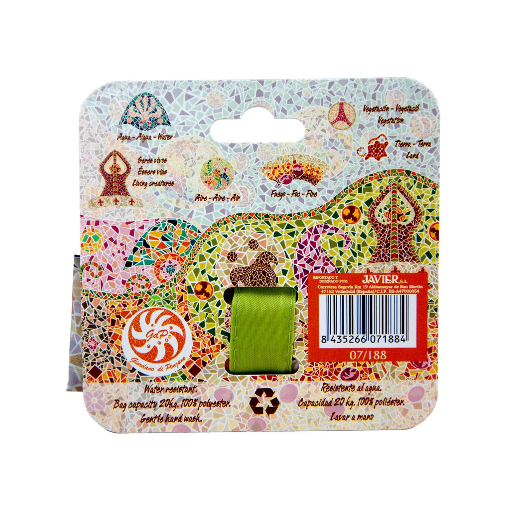 Bolsa plegable y reutilizable de la colección Elementos de Javier. Al tener un tamaño reducido cuando está plegada, es ideal para llevarla siempre contigo a cualquier lugar: a la compra, en el coche, en el bolso, etc. y ¡dar un toque de color a tus días!
