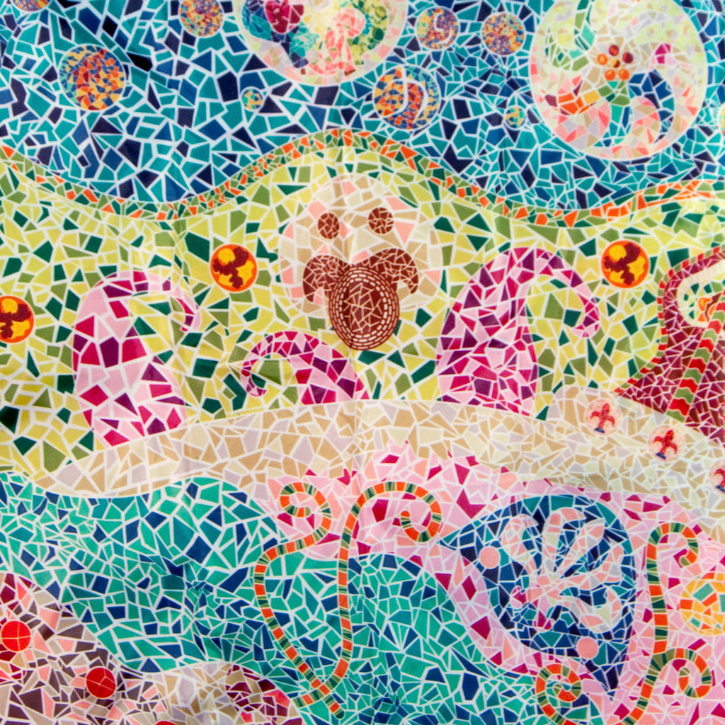 Esta colección de Giordano di Ponzano se inspira en la técnica del trencadís del arquitecto modernista catalán Antoni Gaudí, una técnica para el revestimiento de estructuras que consiste en la creación de un mosaico, generalmente abstracto, a través de trozos irregulares de cerámica, vidrio o mármol.