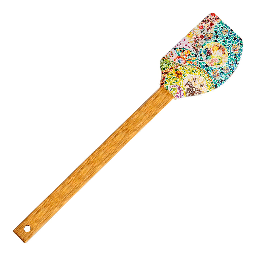 Espátula de cocina tipo lengua de gato de la colección Elementos de Javier. Está fabricada en silicona con mango de bambú, materiales muy resistentes, por lo que es un utensilio perfecto para tu día a día.