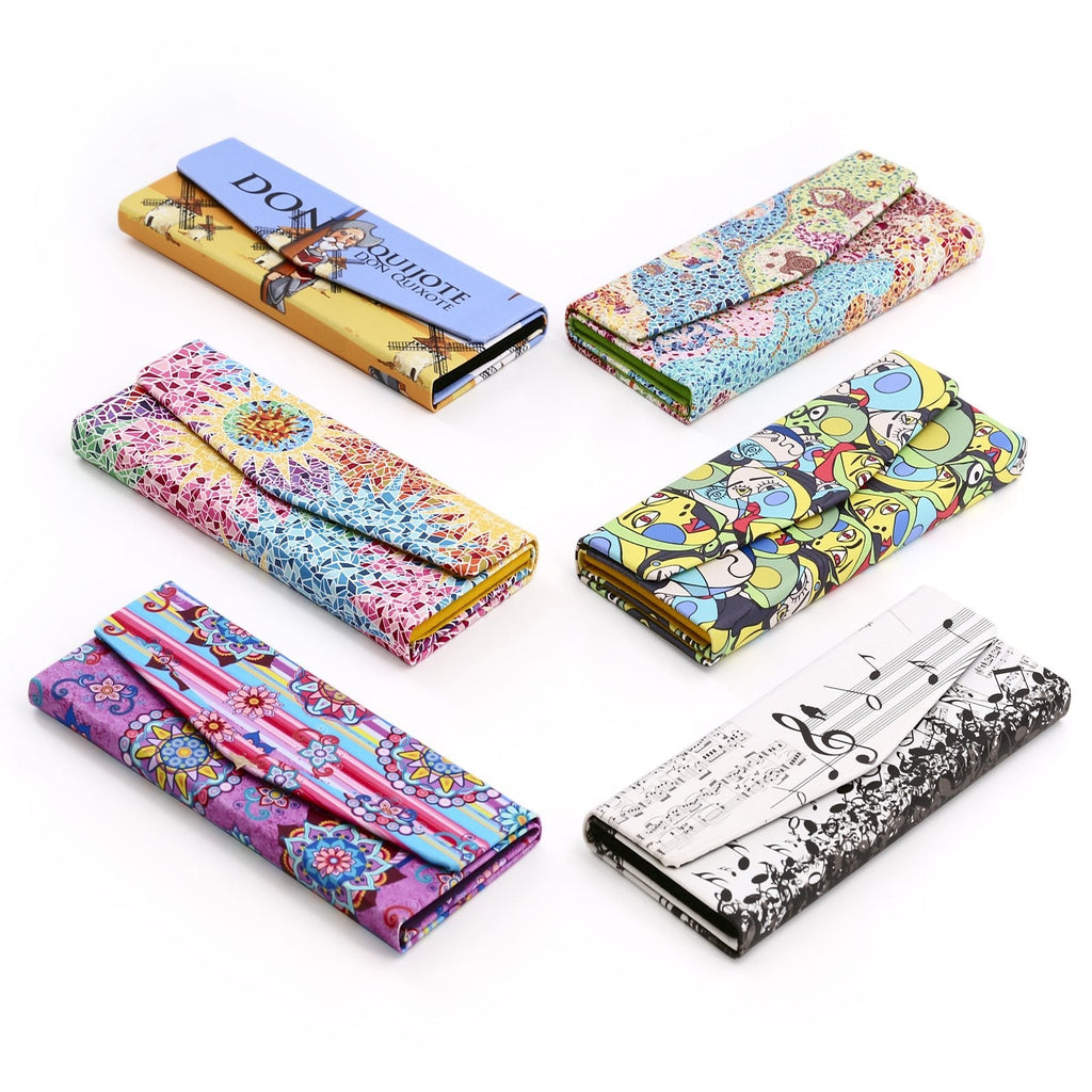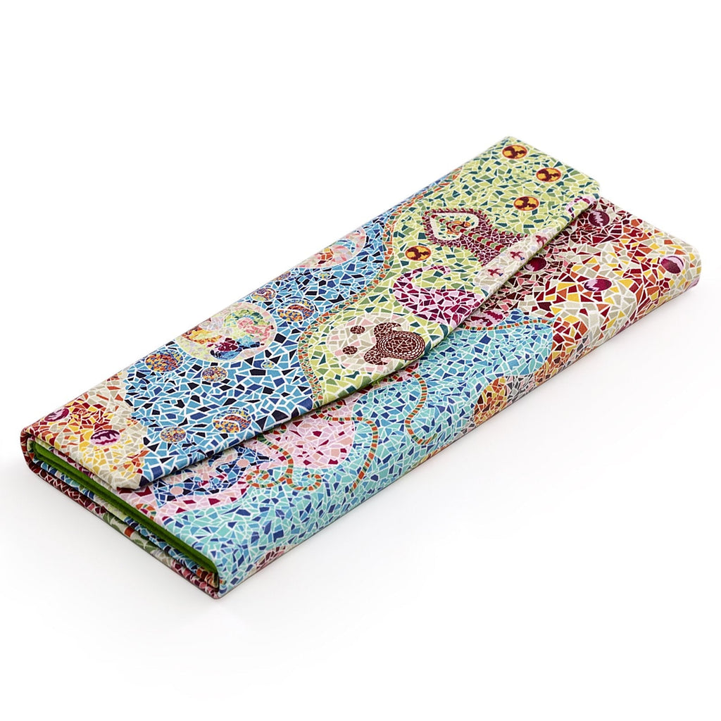 Cuando está plegada, queda totalmente plana, perfecta para ahorrar espacio. Interior forrado en símil de terciopelo que evita cualquier posible rayadura en los cristales de tus gafas y su cierre magnético, muy cómodo de usar.