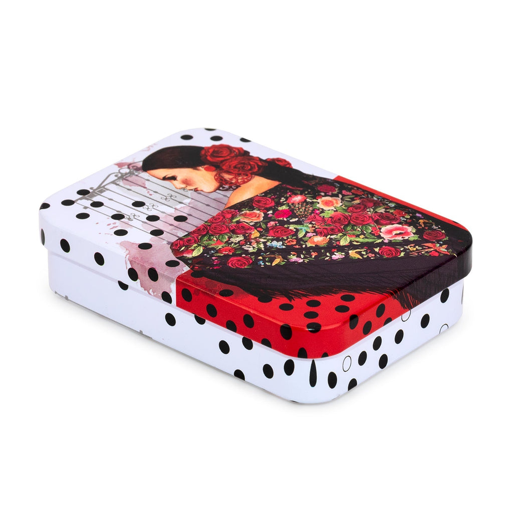 Esta colección de Giordano di Ponzano se inspira en el arte del flamenco, considerado uno de los bailes populares más reconocidos de España. En el diseño tenemos como protagonista a una bailaora a la cuál reconocemos por su característico vestido de flamenca, el mantoncillo de flecos y las flores en el cabello.