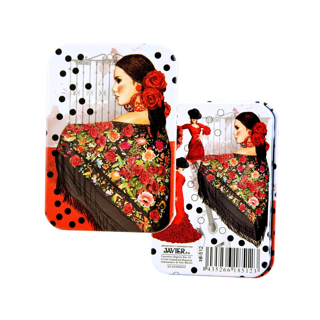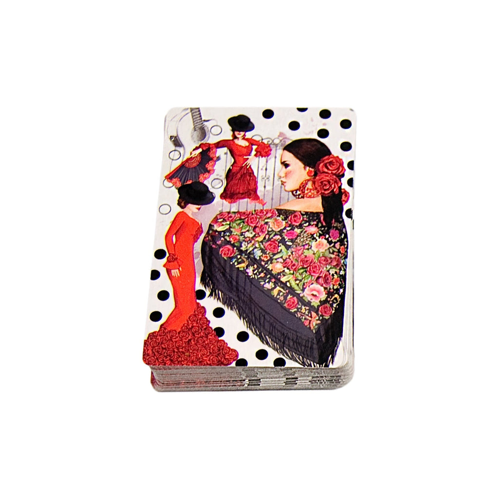 Baraja de Poker de la colección Flamenco de Javier con un diseño exclusivo en el reverso. Está conformada por 52 cartas inglesas plastificadas para asegurar una mayor durabilidad y 2 cartas comodín.