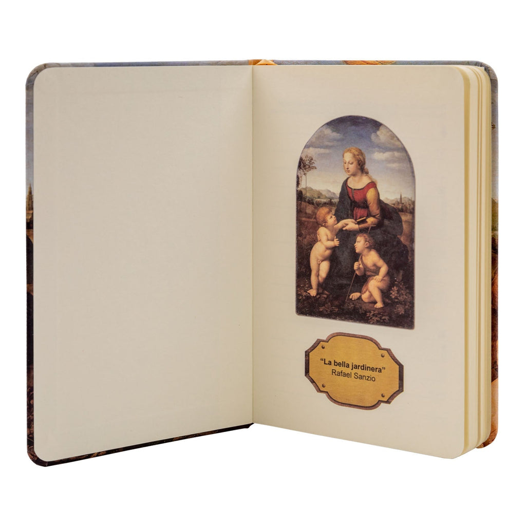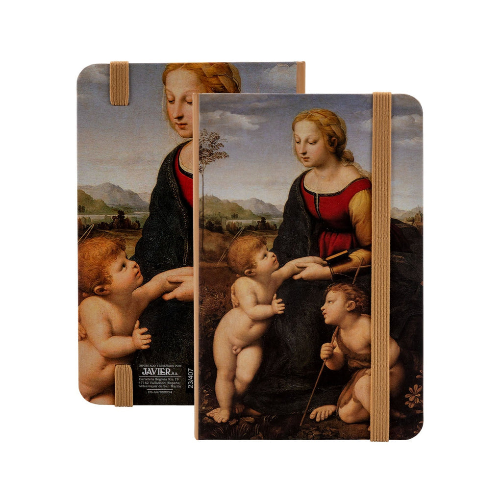 Libreta de notas en formato A6 JAVIER La Bella Jardinera con cubiertas rígidas estampadas, cierre de goma y marca páginas de tela, perfecta para llevar contigo a cualquier lugar por su tamaño compacto y su practicidad.