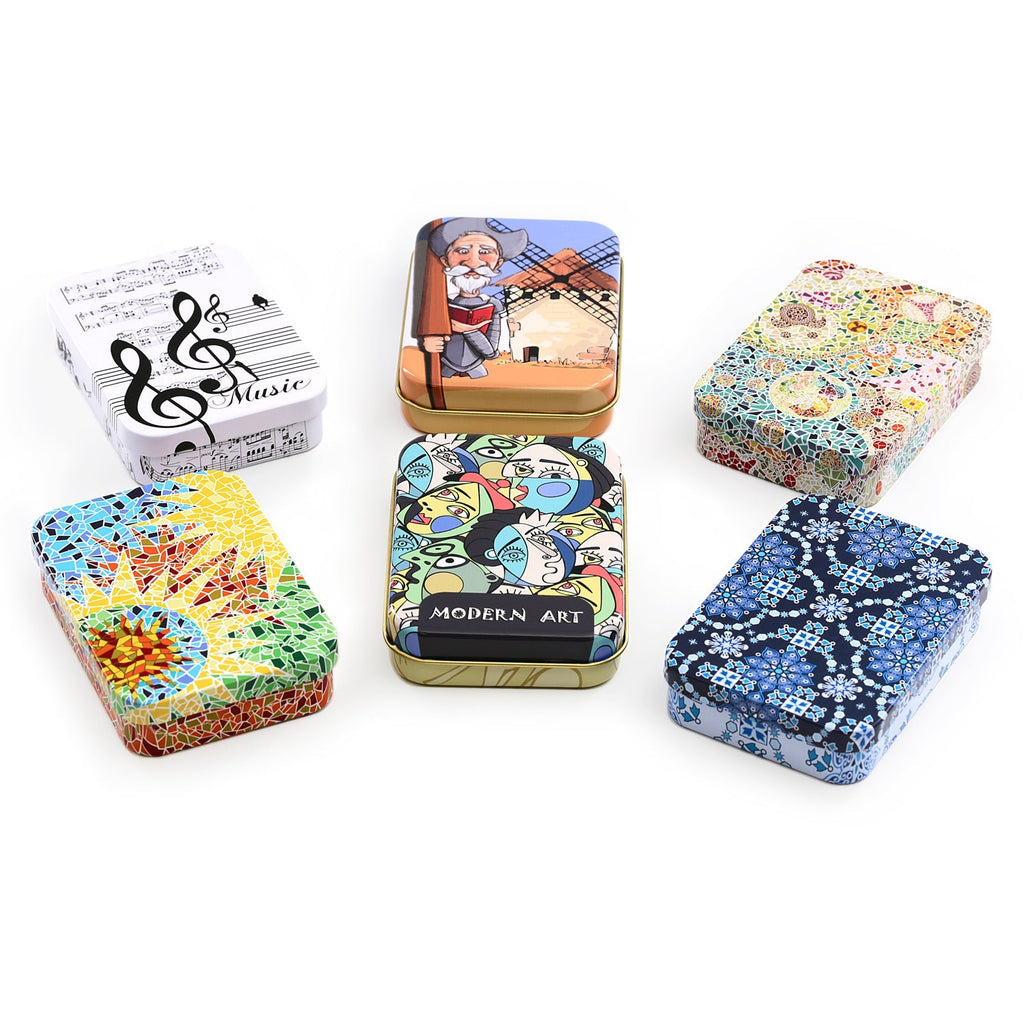 Se presentan en un estuche metálico con el mismo dibujo que el reverso de las cartas y cuenta con cierre a presión. Perfecto para que te puedas llevar tu baraja a cualquier lugar de forma segura.