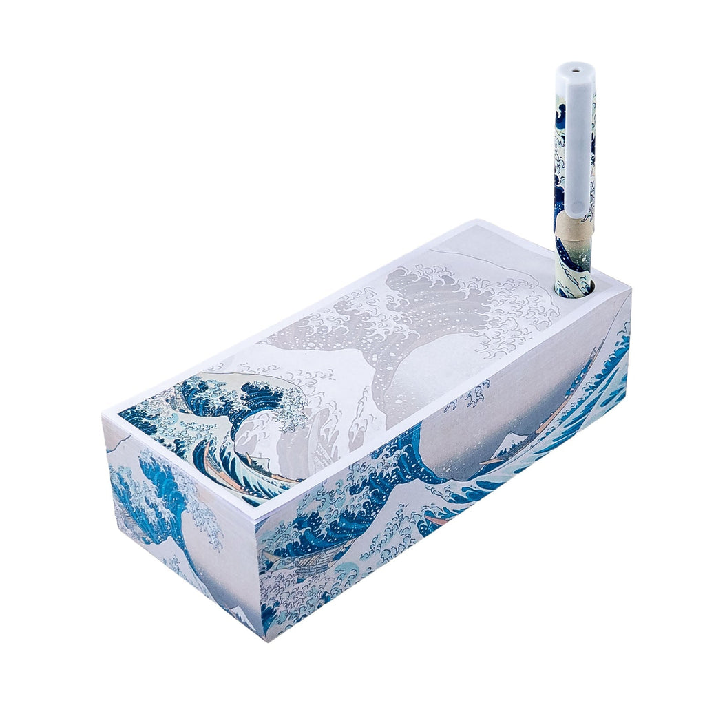 Bloc de notas con hojas arrancables de la colección La Ola de Javier con bolígrafo incluido. Podrás disponer el bolígrafo en el orificio que se encuentra en la parte superior del bloc, para tenerlo siempre a mano cuando necesites tomar una nota rápida.