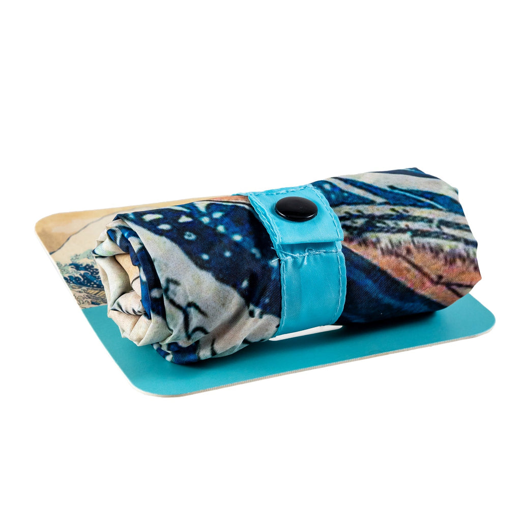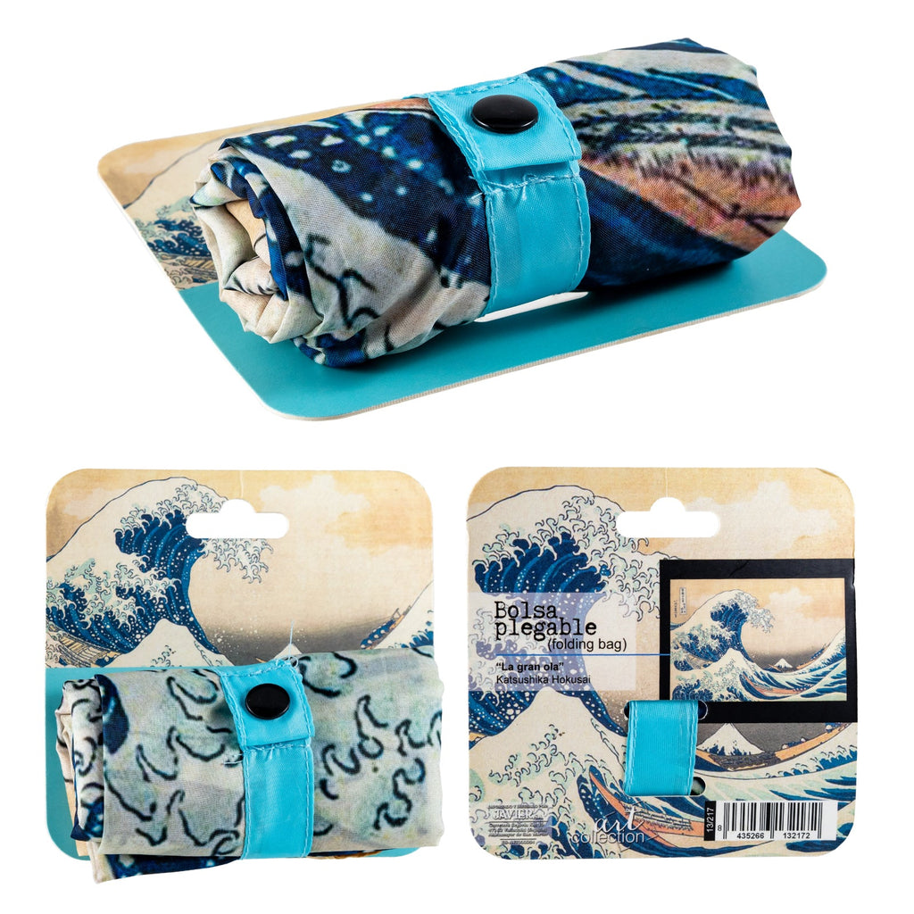 Bolsa plegable y reutilizable de la colección La Ola de Javier. Al tener un tamaño reducido cuando está plegada, es ideal para llevarla siempre contigo a cualquier lugar: a la compra, en el coche, en el bolso, etc. y ¡dar un toque de color a tus días!