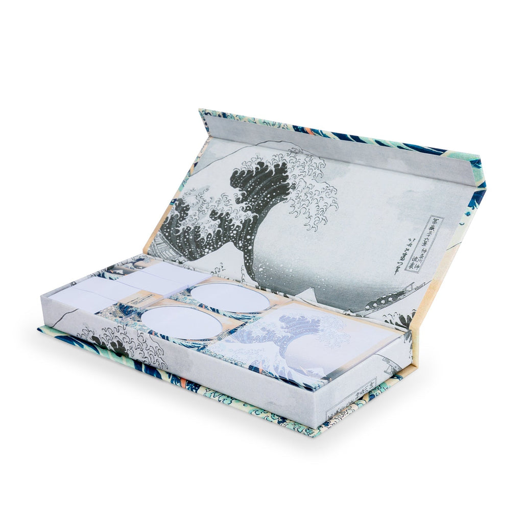Set de notas adhesivas decoradas (formato Post-it) en caja de la colección El Beso, con cierre magnético. Las notas vienen en tres tamaños: pequeñas y rectangulares, ideales para usar como marcadores de página (4 blocs), medianas y rectangulares, para escribir un pequeño texto (2 blocs), y grandes y cuadradas tipo Post-it, para escribir notas más largas (1 bloc).