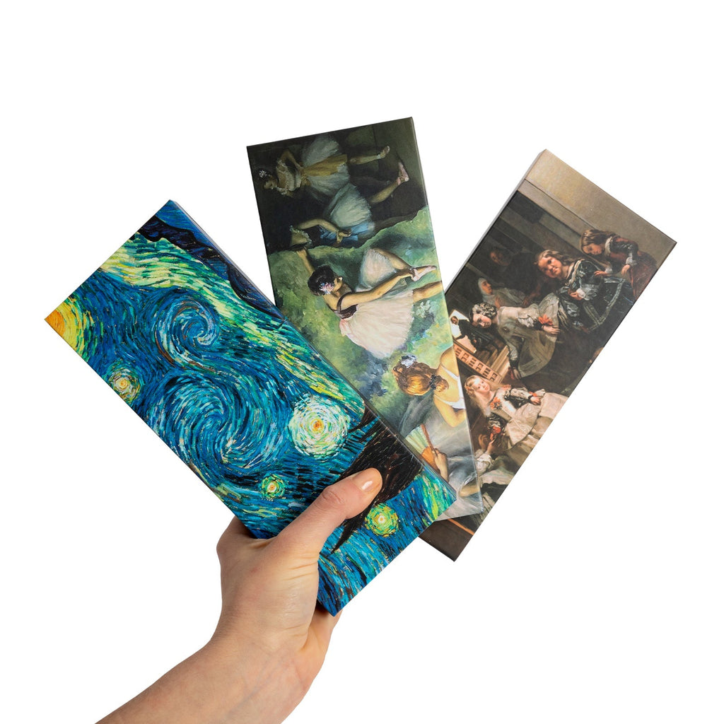Su diseño le permite poder ser transportada fácilmente, sin perder ninguna pieza. Además, los distintos tamaños de cada pieza hacen que sea de uso versátil para casa, escuela y oficina, pues pueden usarse como marcapáginas, planificador, calendario... El regalo perfecto para personas planificadoras y amantes del arte.
