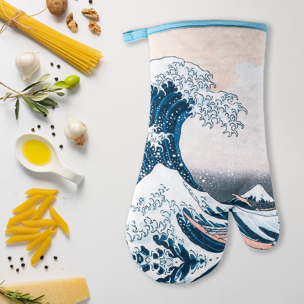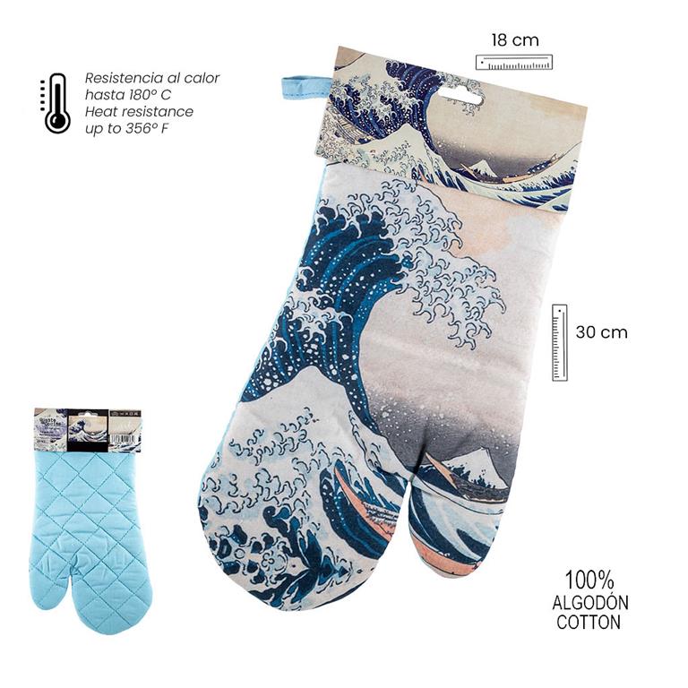 Guante o manopla de cocina JAVIER La Ola fabricado en 100% algodón, perfecto para manipular el horno, barbacoas, etc. Ideal para proteger bien tus manos y muñecas de las quemaduras.