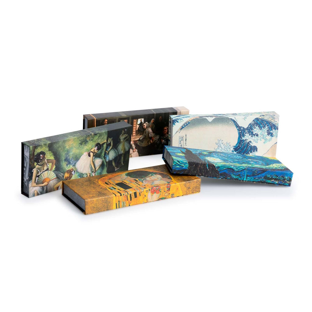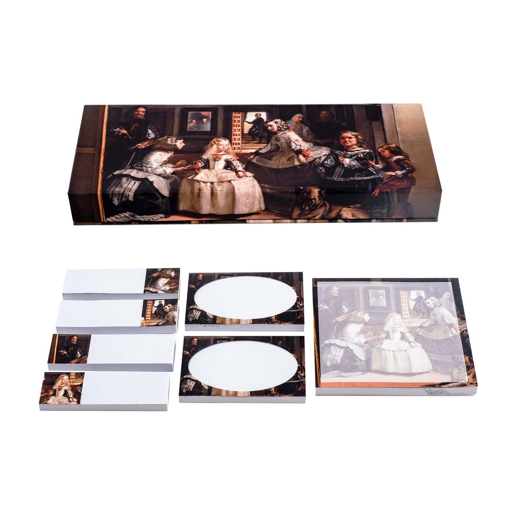 Su diseño le permite poder ser transportada fácilmente, sin perder ninguna pieza. Además, los distintos tamaños de cada pieza hacen que sea de uso versátil para casa, escuela y oficina, pues pueden usarse como marcapáginas, planificador, calendario... El regalo perfecto para personas planificadoras y amantes del arte.