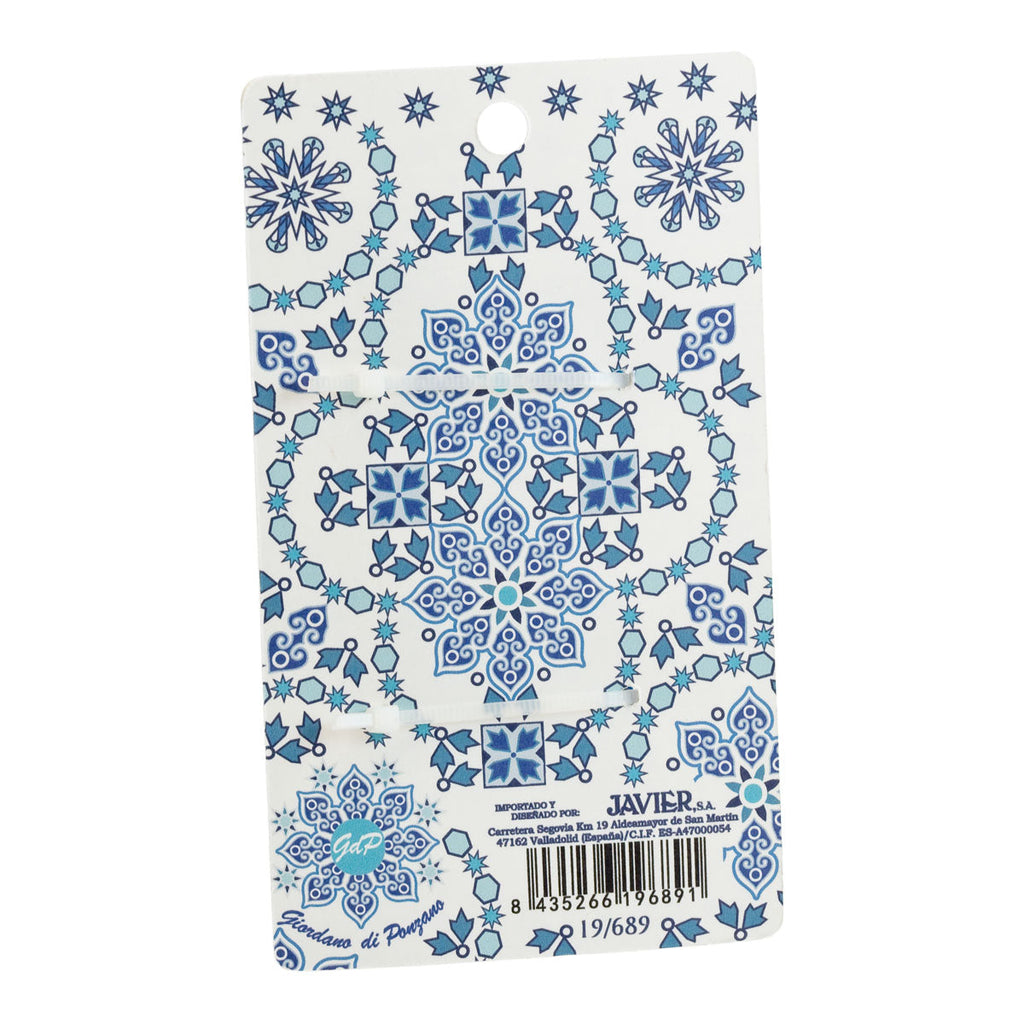 Conjunto de 2 pinzas para el cabello, fabricadas en plástico rígido de alta calidad con un diseño único decorado con motivos abareques en color azul, con el acabado en soft touch, el cierre mandibular permite una sujeción segura, sin que la pinza se deslice, con un peso ligero.