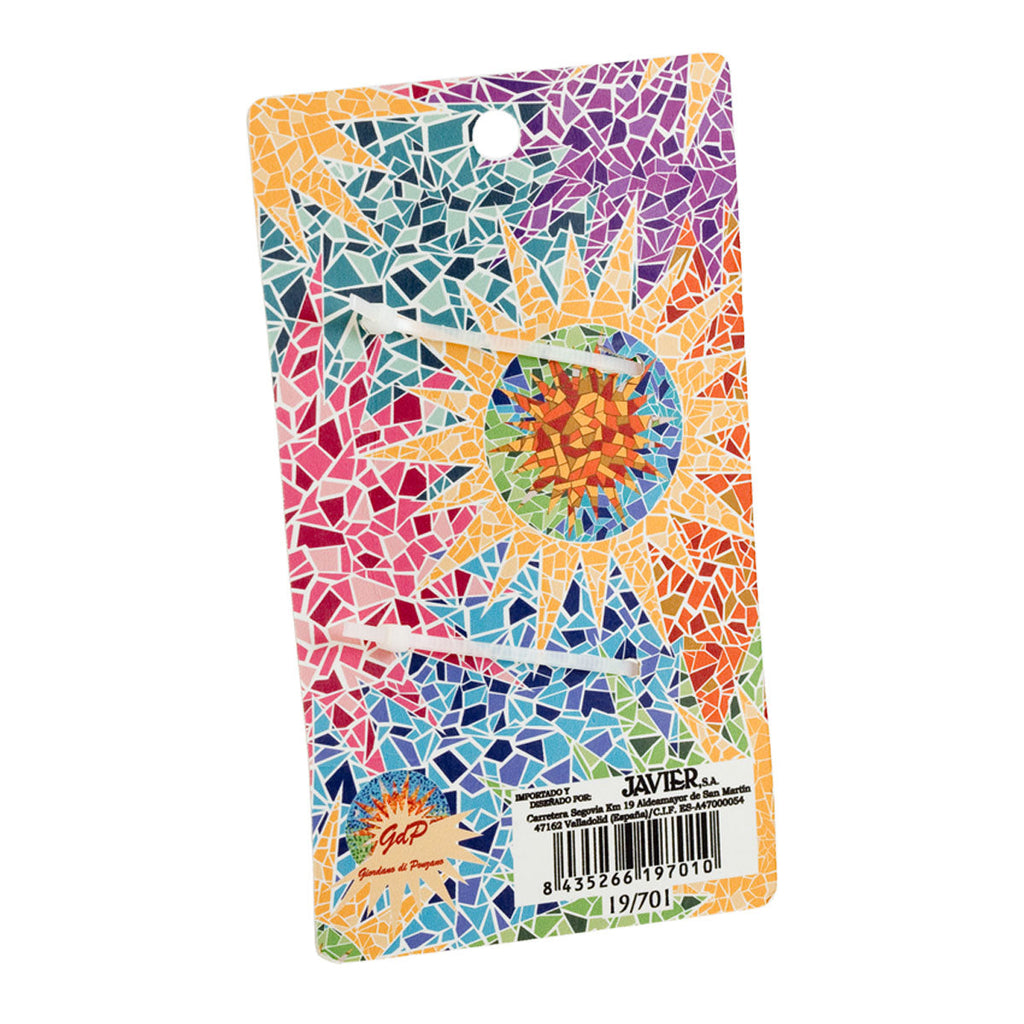Conjunto de 2 pinzas para el cabello, fabricadas en plástico rígido de alta calidad con un diseño único decorado con coloridos motivos trencadís, inspirados en Gaudi, con el acabado en soft touch, el cierre mandibular permite una sujeción segura, sin que la pinza se deslice, con un peso ligero.