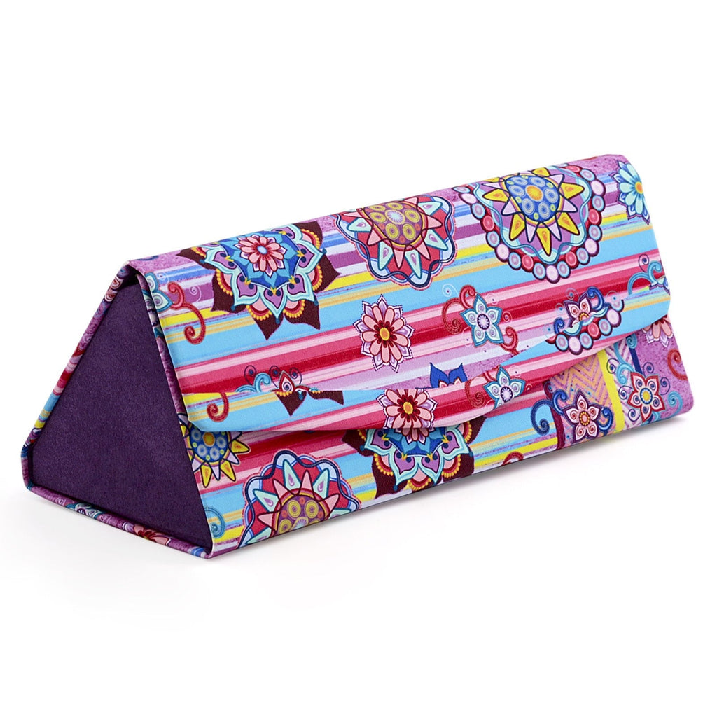 Funda para gafas plegable de la colección Mandalas de Javier con un diseño en formato triangular con cierre magnético. Ideal para que puedas llevar tus gafas siempre protegidas a cualquier lugar.