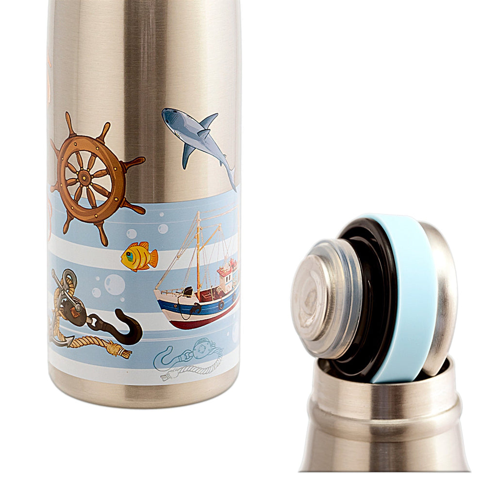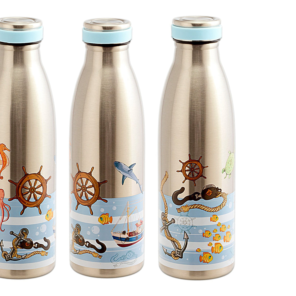 Botella de agua reutilizable fabricada en doble capa de acero inoxidable de calidad alimentaria 316, utilizado para fabricar instrumental médico y de laboratorio por su máxima calidad y excepcionales propiedades anti-corrosión. Tapón roscado. Mantiene tus bebidas frías durante 24 horas y calientes durante 7.