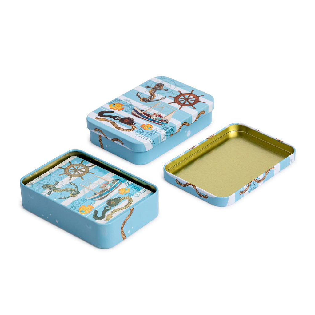 Se presentan en un estuche metálico con el mismo dibujo que el reverso de las cartas y cuenta con cierre a presión. Perfecto para que te puedas llevar tu baraja a cualquier lugar de forma segura.