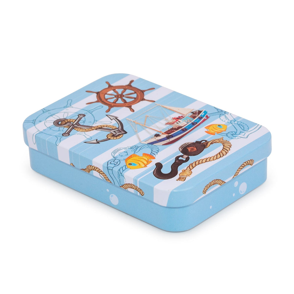 Esta colección de Giordano di Ponzano se inspira en el mar y en la pesca marítima, y encontramos elementos tan característicos como un barco pesquero, anclas, timón y peces.