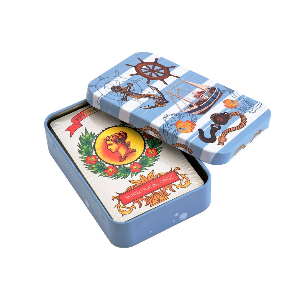 Baraja de cartas española de la colección Marineros de Javier con un diseño exclusivo en el reverso. Está conformada por 48 cartas españolas plastificadas para asegurar una mayor durabilidad y 2 cartas comodín.