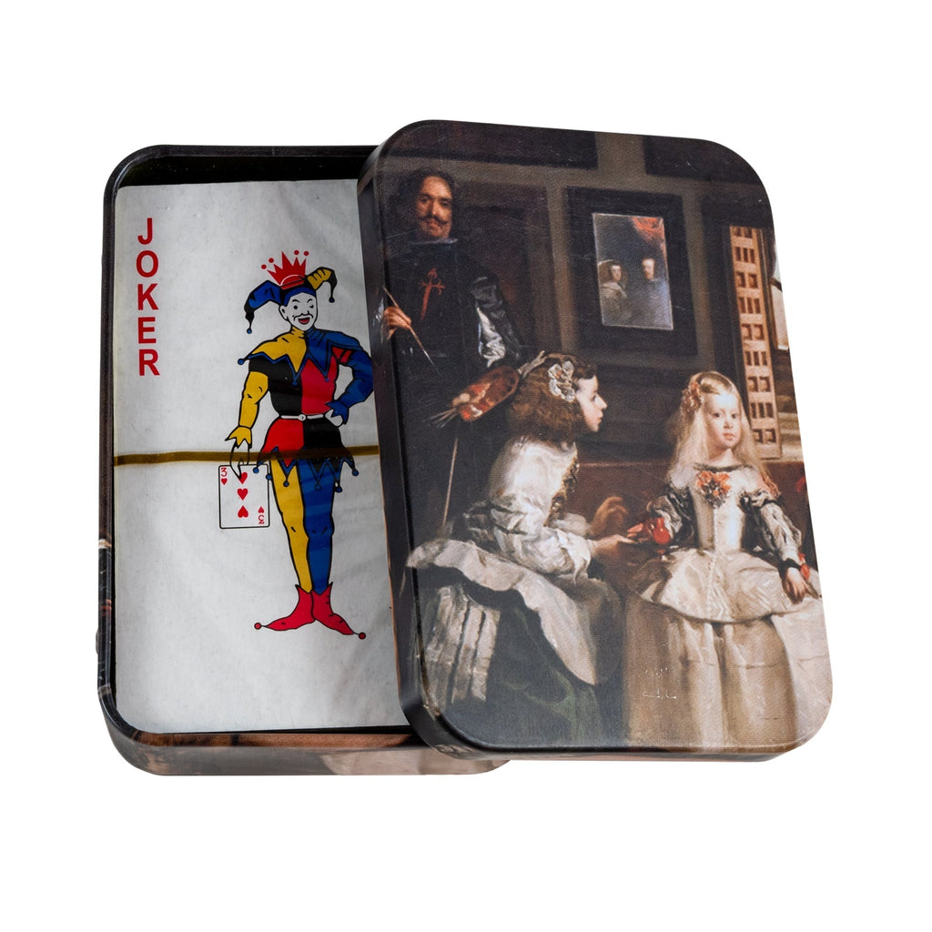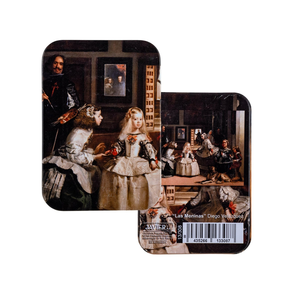 Baraja de Poker de la colección Meninas de Javier con un diseño exclusivo en el reverso. Está conformada por 52 cartas inglesas plastificadas para asegurar una mayor durabilidad y 2 cartas comodín.