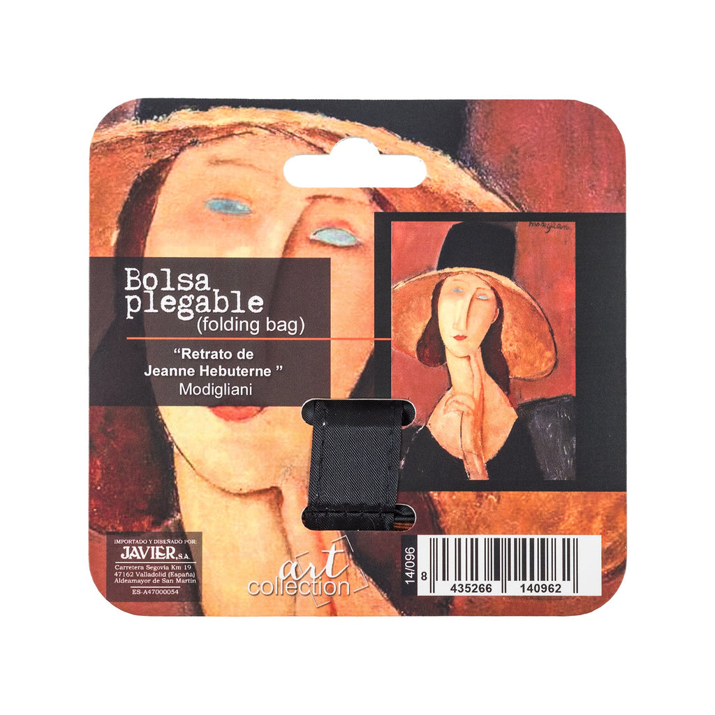 Bolsa plegable y reutilizable de la colección Modigliani de Javier. Al tener un tamaño reducido cuando está plegada, es ideal para llevarla siempre contigo a cualquier lugar: a la compra, en el coche, en el bolso, etc. y ¡dar un toque de color a tus días!
