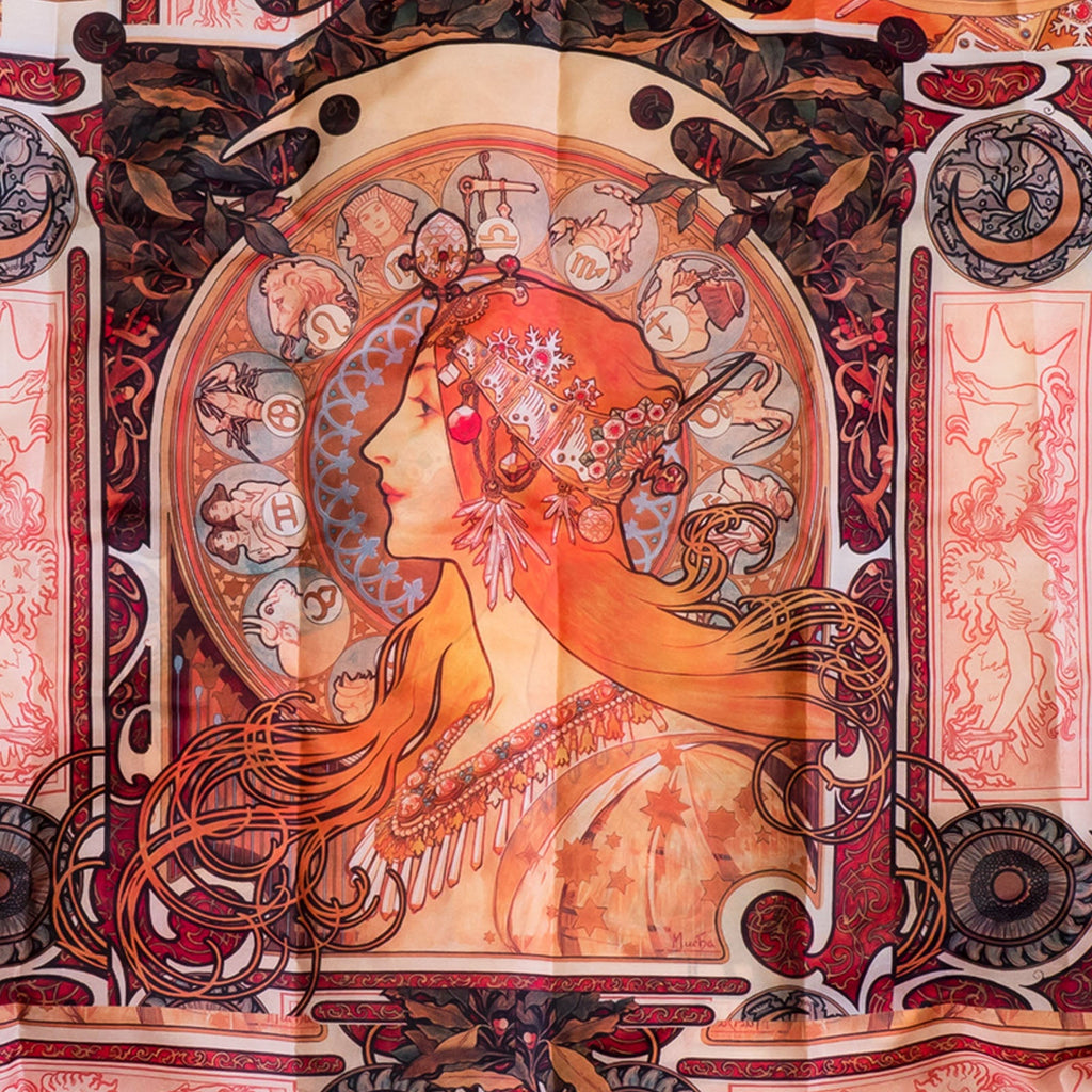 Esta colección se inspira en el cartel Zodiaco de Alphonse Mucha. Fue creado en 1896 y es de estilo Art Nouveau. En esta composición, Mucha incorporó doce signos del zodiaco en el disco con forma de halo situado detrás de la cabeza de la mujer, uno de los motivos habituales de Mucha. La belleza majestuosa de la mujer se ve acentuada por su porte regio y sus elaboradas joyas.
