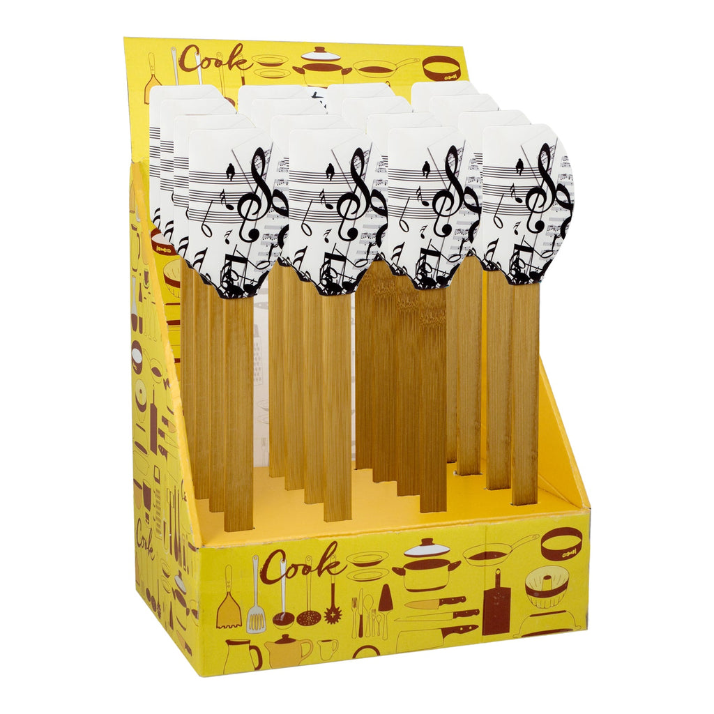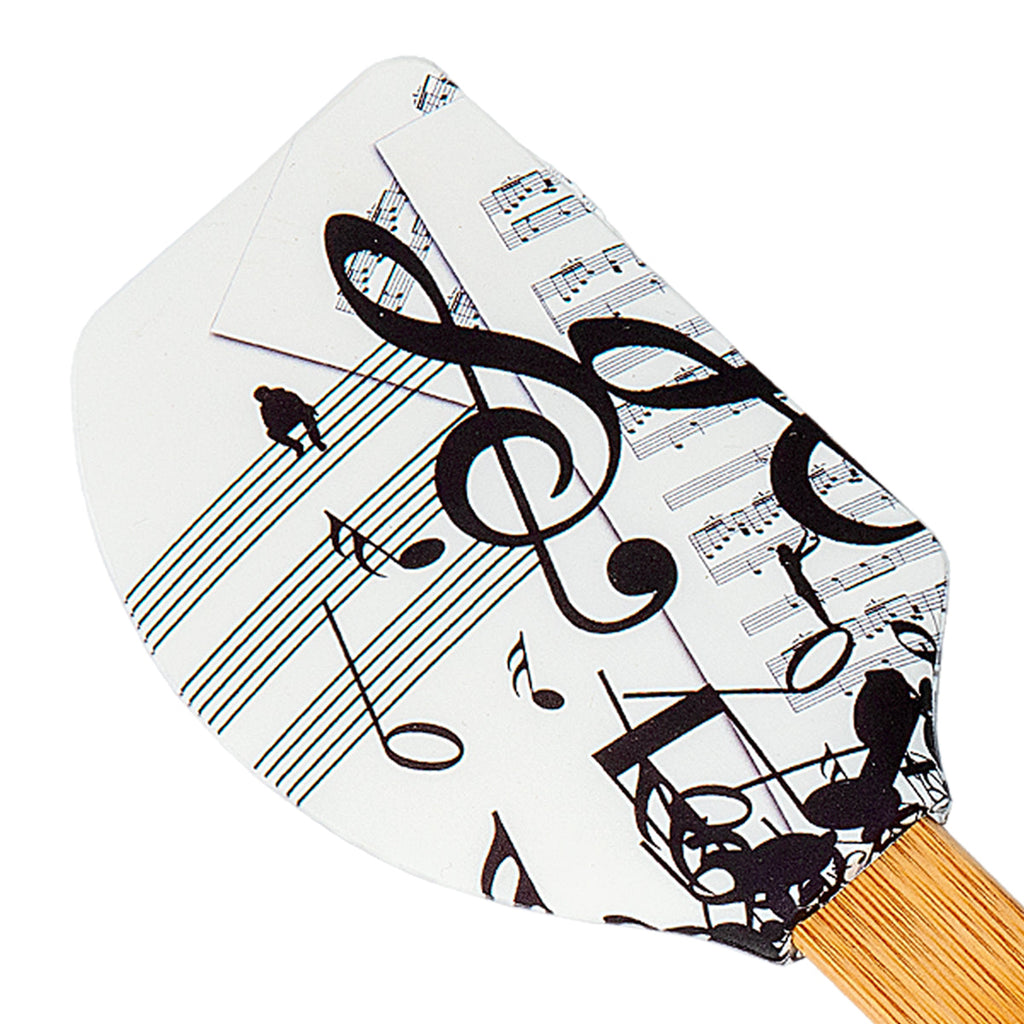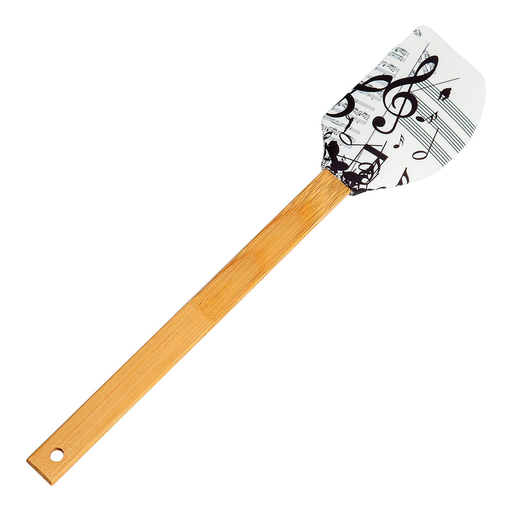 Espátula de cocina tipo lengua de gato de la colección Música de Javier. Está fabricada en silicona con mango de bambú, materiales muy resistentes, por lo que es un utensilio perfecto para tu día a día.