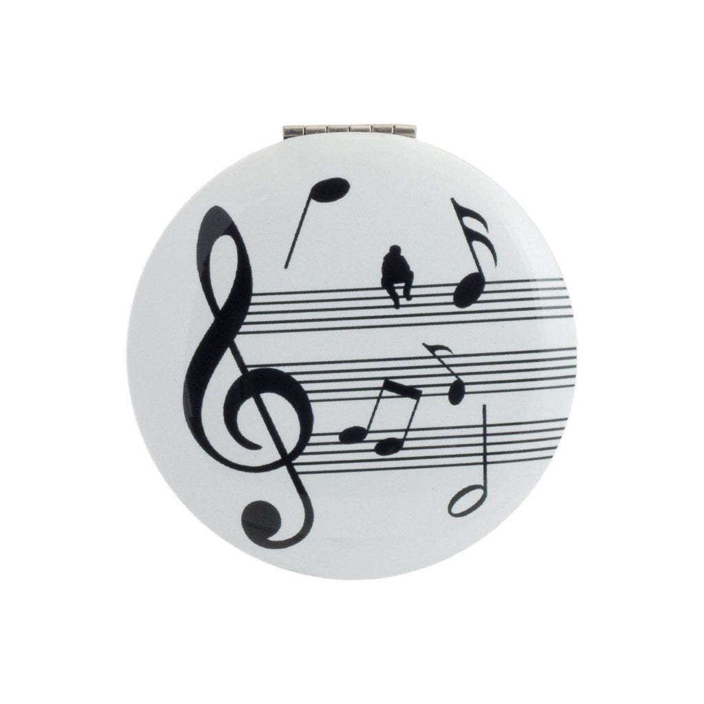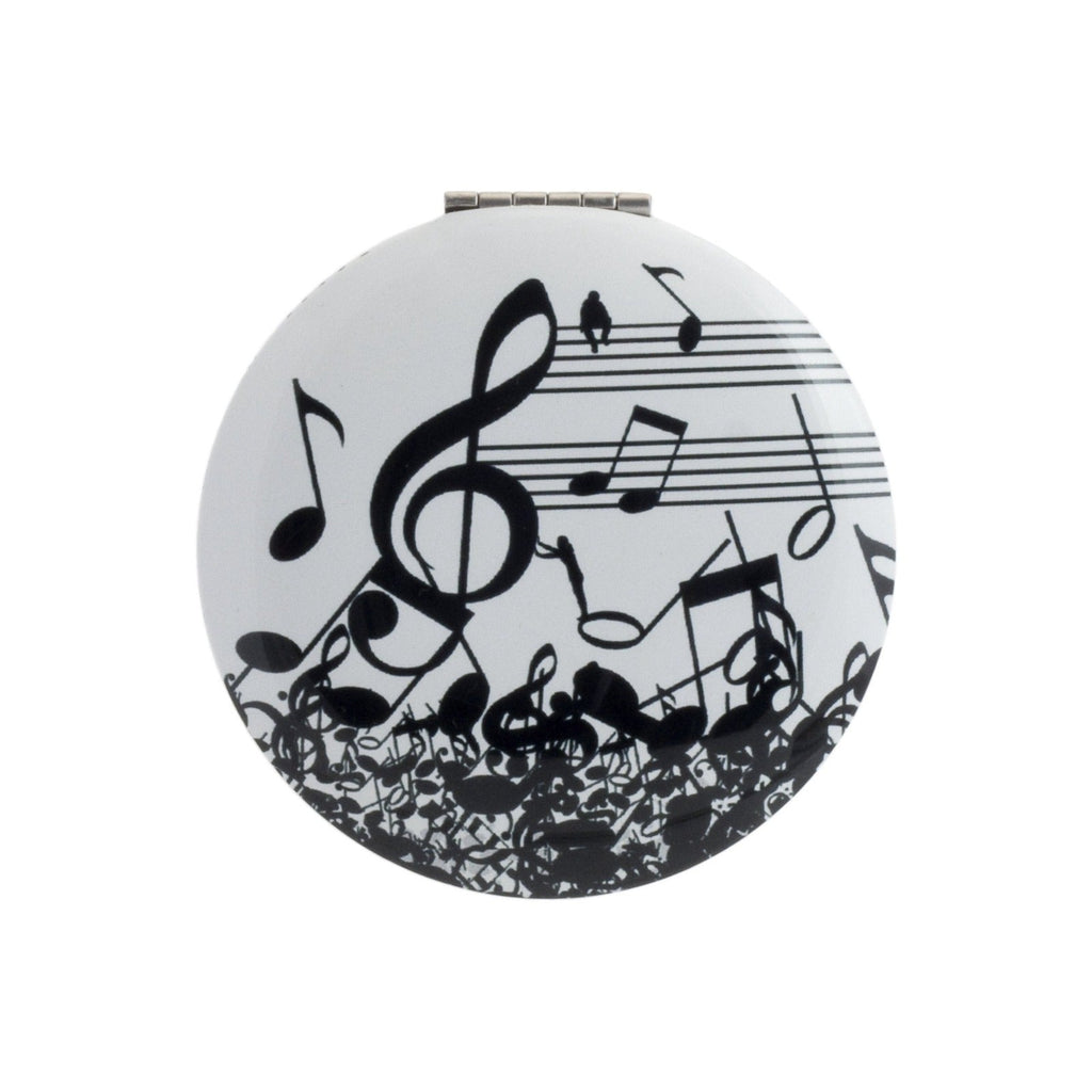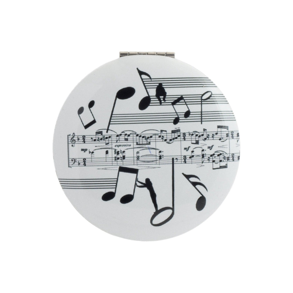 Espejo de bolsillo redondo de 7 cm con diseños inspirados en las notas musicales y las partituras y diseñados por Giordano di Ponzano. El exterior está fabricado en acero, y es ideal para llevar a cualquier lugar sin que te ocupe nada de espacio.