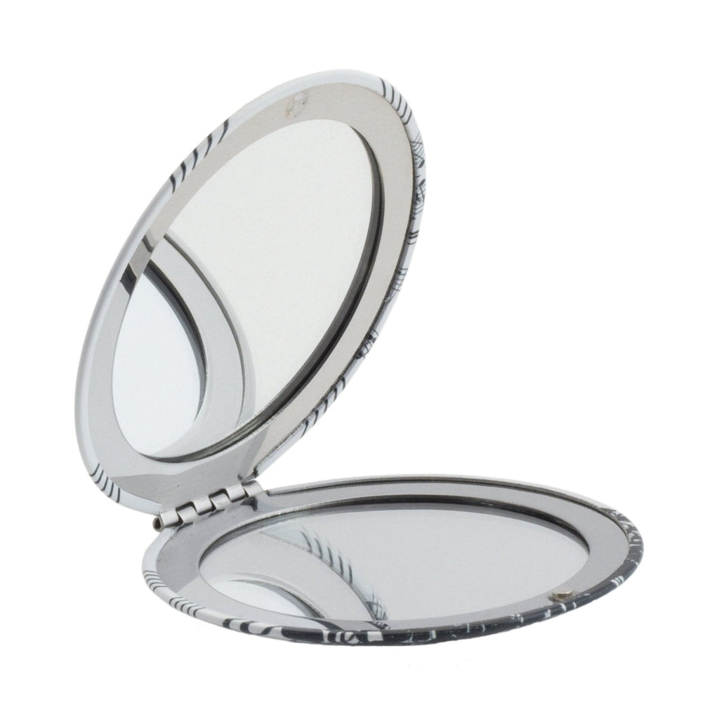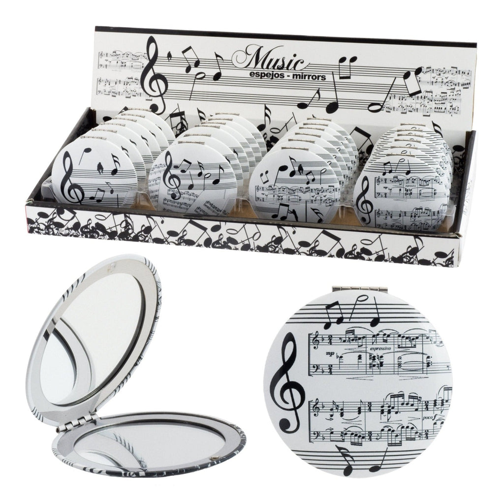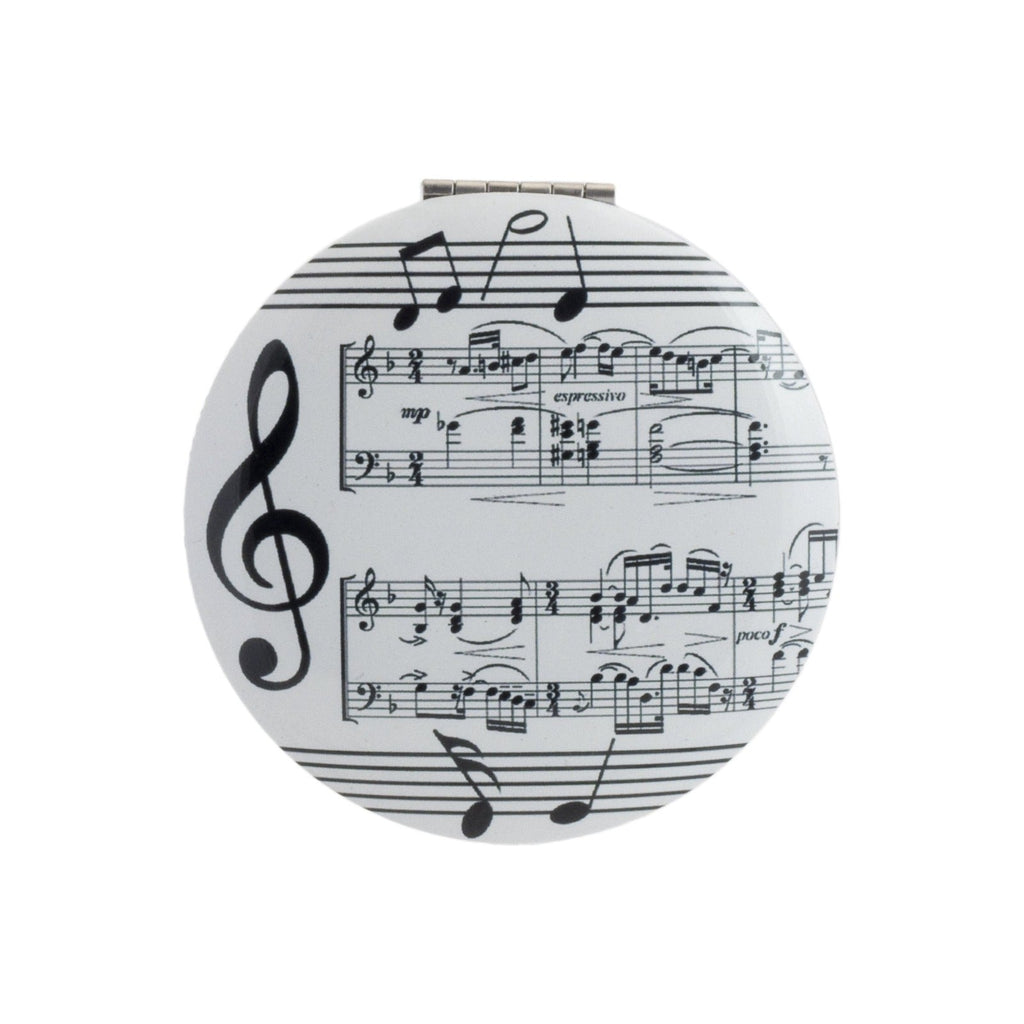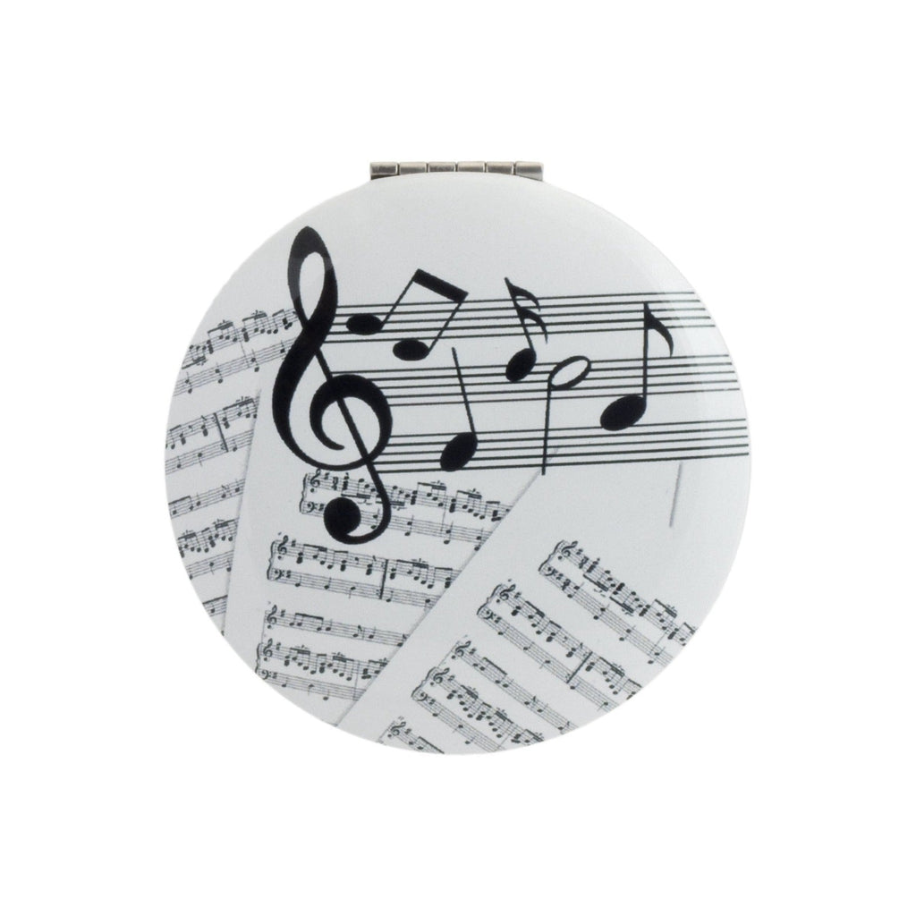 Espejo de bolsillo redondo de 7 cm con diseños inspirados en las notas musicales y las partituras y diseñados por Giordano di Ponzano. El exterior está fabricado en acero, y es ideal para llevar a cualquier lugar sin que te ocupe nada de espacio.