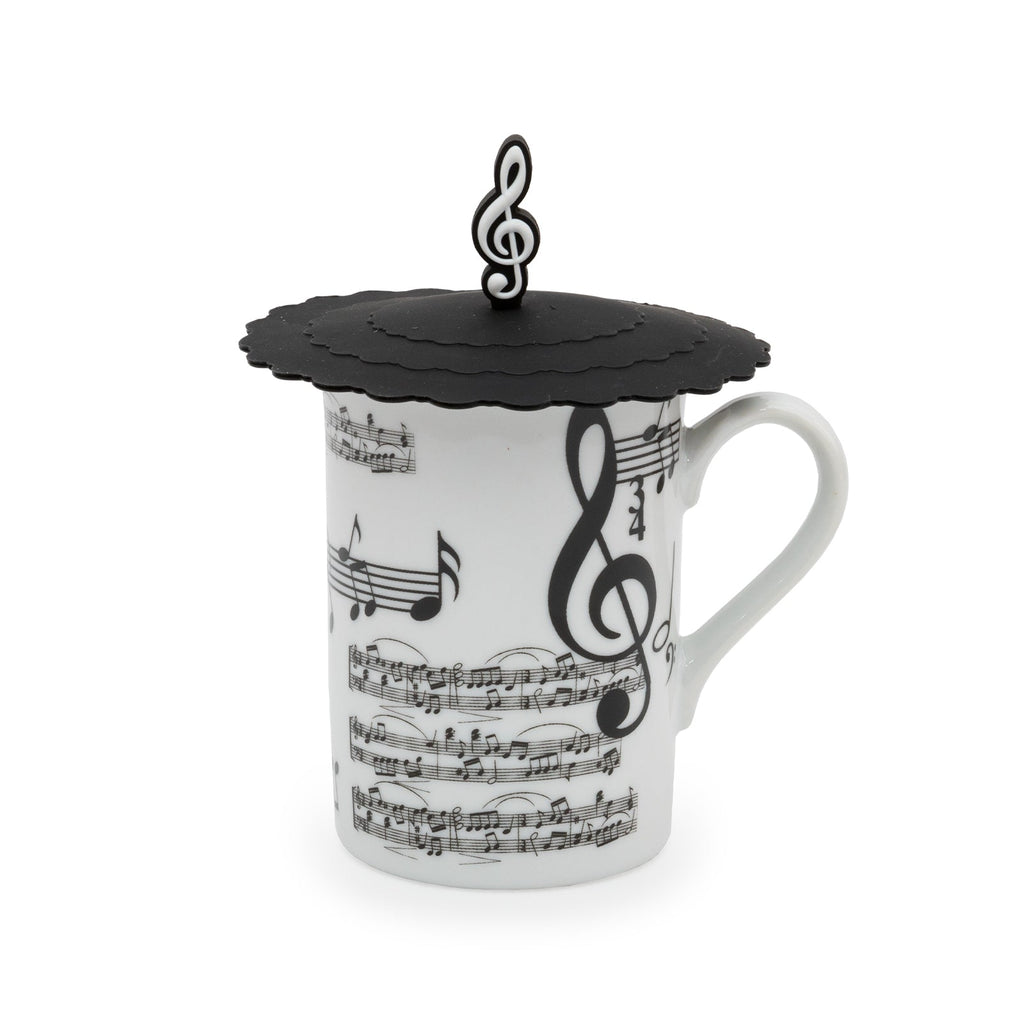 Taza para infusiones con tapa y filtro JAVIER Música presentada en lata metálica, ideal para regalar. Incluye filtro metálico con agarradero donde podrás poner las hierbas a infusionar a granel sin que se mezclen con el agua.