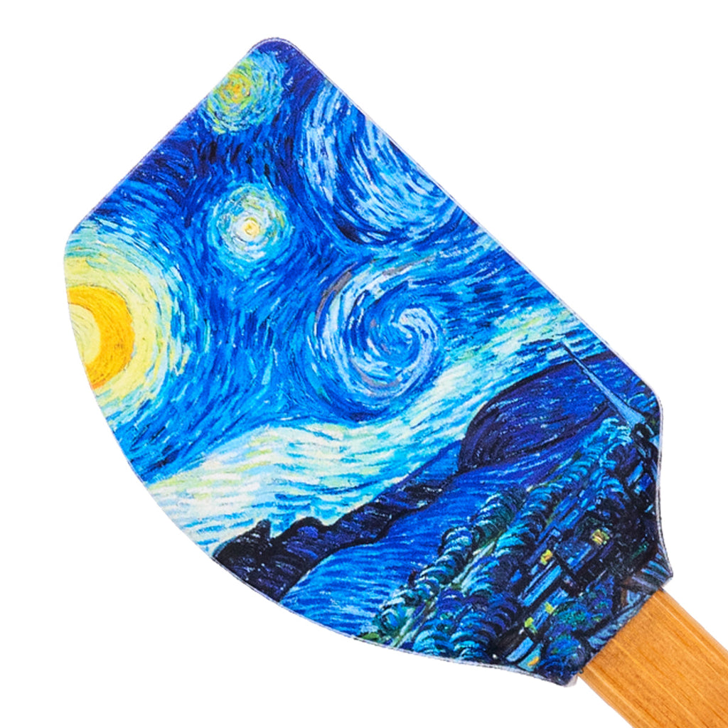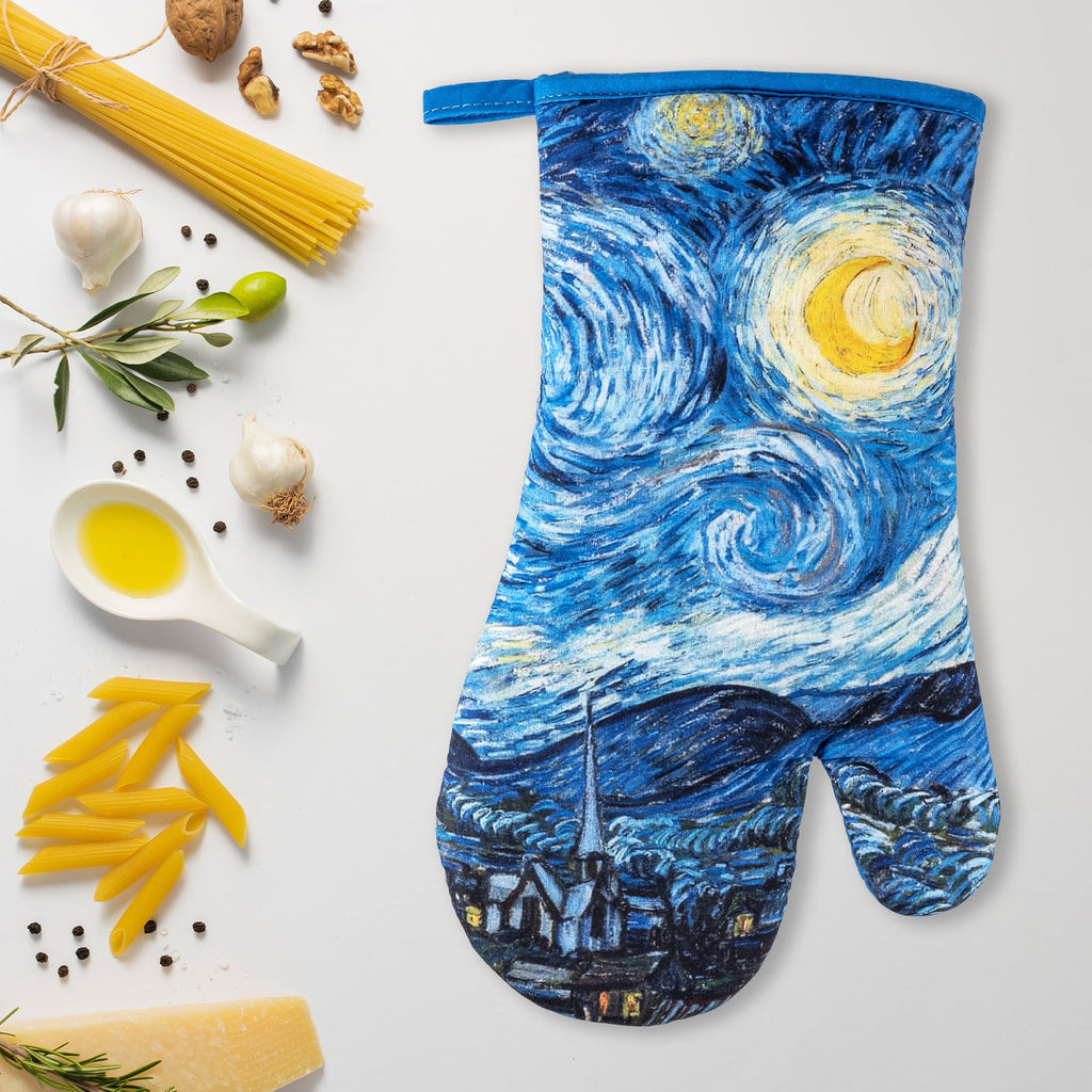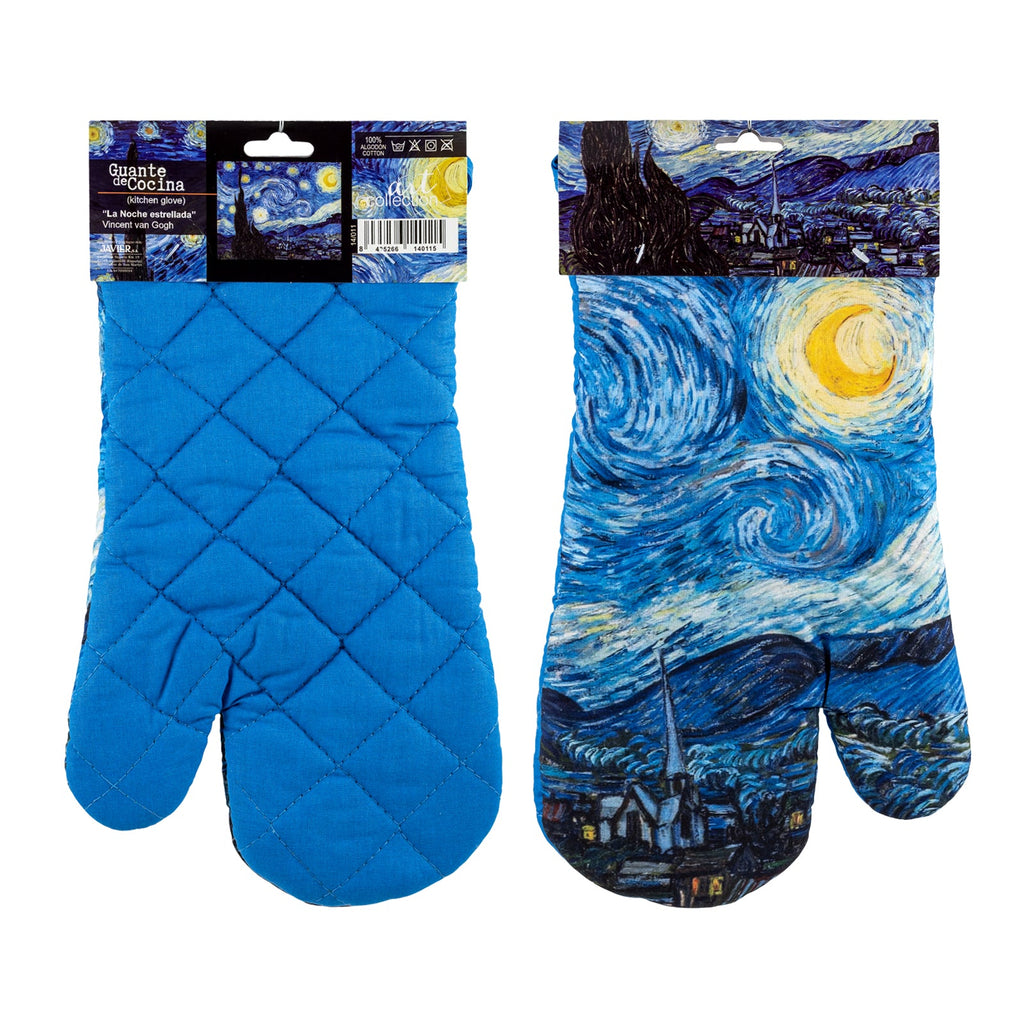 Juego de 2 guantes o manoplas de cocina JAVIER Noche Estrellada fabricados en 100% algodón, perfectos para manipular el horno, barbacoas, etc. Ideales para proteger bien tus manos y muñecas de las quemaduras. Incluye espátula de silicona y mango de bambú a juego.