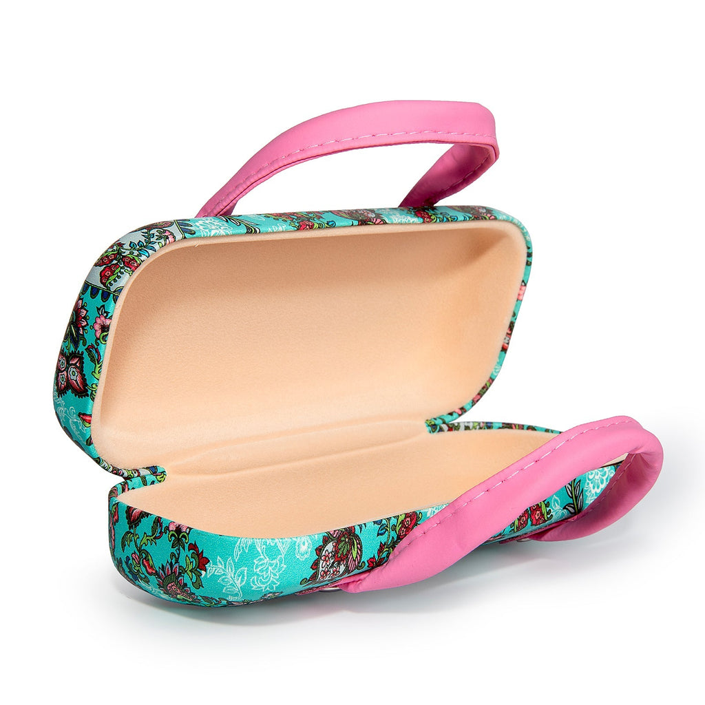 Funda para gafas rígida de la colección Pachamama de Javier con cierre flex. Viene provista de unas asas para mayor comodidad en su transporte. Es ideal para que puedas llevar tus gafas siempre protegidas a cualquier lugar.
