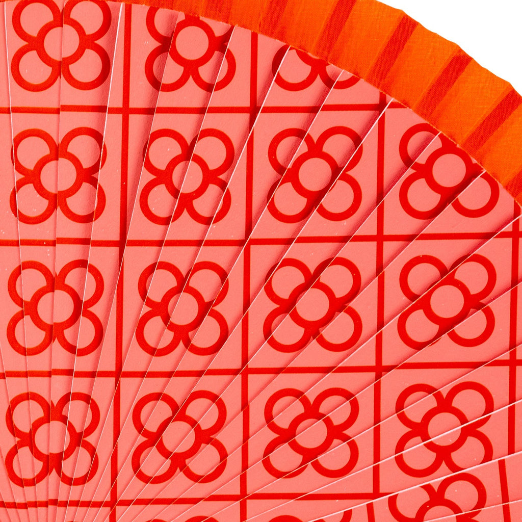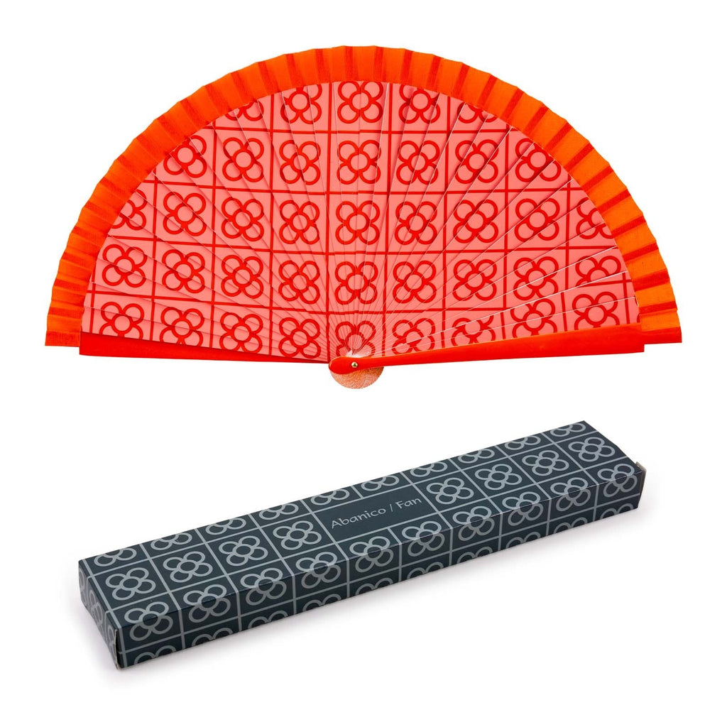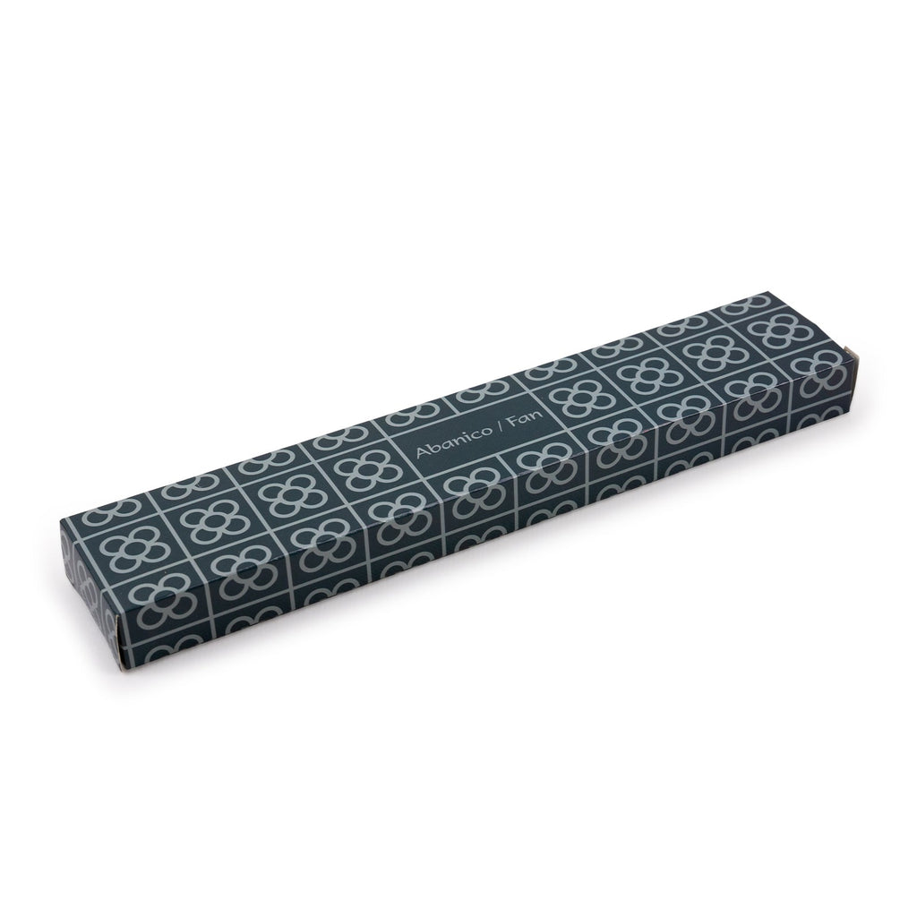 Abanico plegable de la colección Panot de Javier. Está fabricado con varillas de madera estampada y tela. El abanico viene presentado en un estuche de cartón con el mismo diseño, ¡perfecto para regalar!