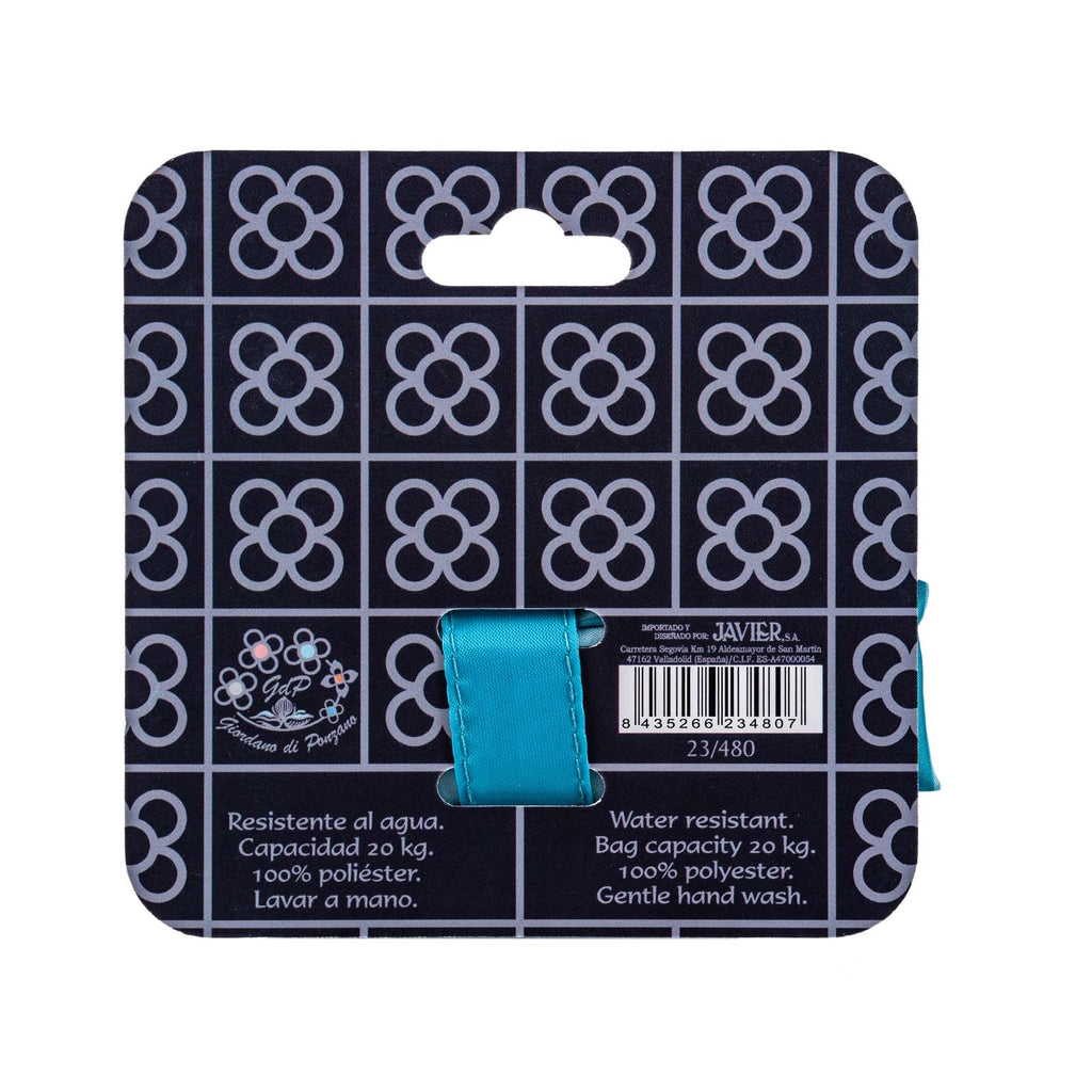 Está fabricada en poliéster, un material muy resistente perfecto para este complemento. Tiene una capacidad de hasta 20 kg, y cuenta con dos asas para hacer su transporte más cómodo. Para prolongar su vida útil, se recomienda lavar a mano sin usar lejía y no secar en la secadora.
