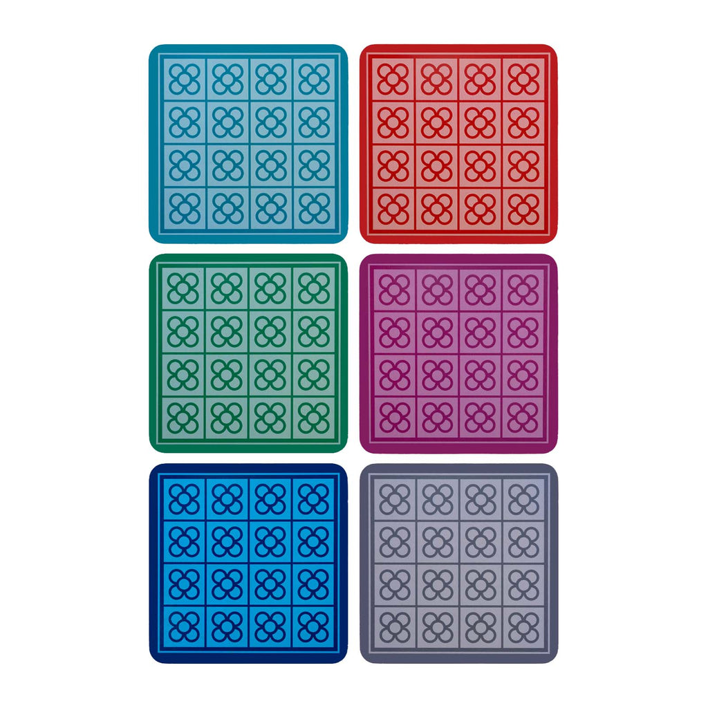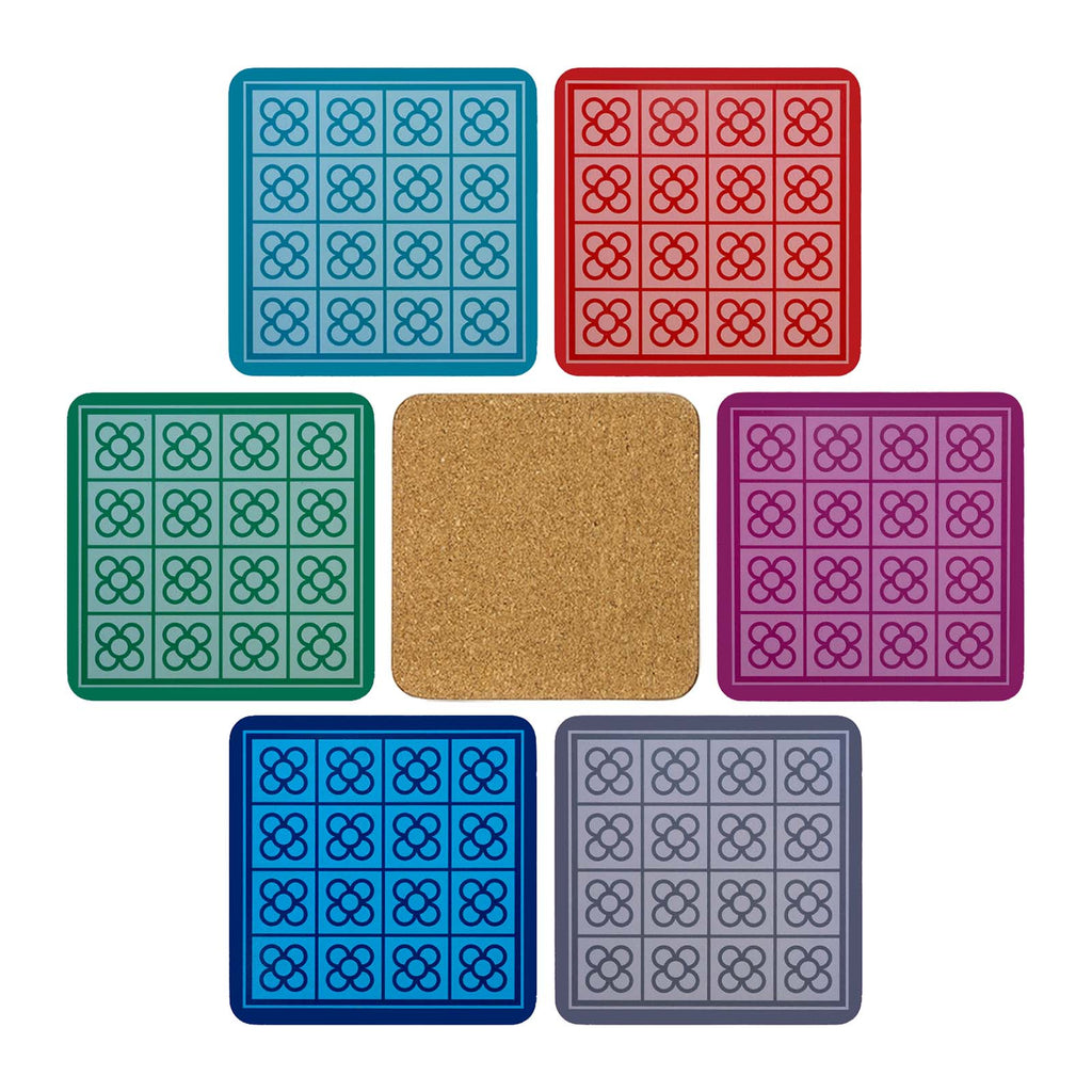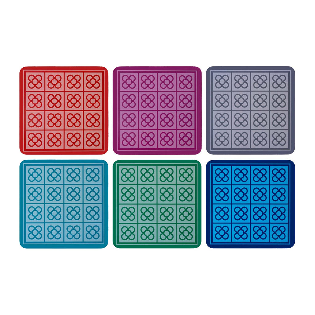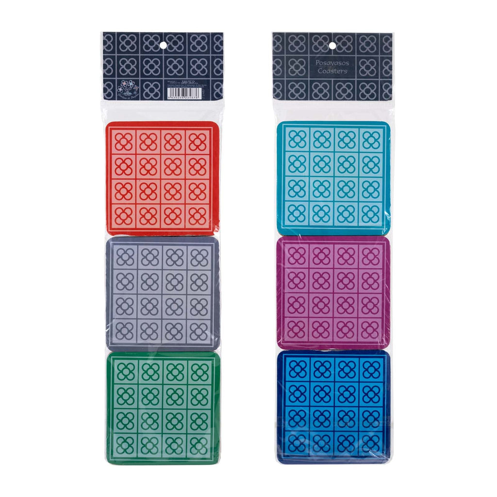 Juego de 6 posavasos cuadrados de 10 cm de la colección Panot de Javier. Están fabricados en madera con base antideslizante de corcho y parte superior decorada. Vienen presentados en una caja de cartón, perfecta para guardarlos y decorar a la vez.