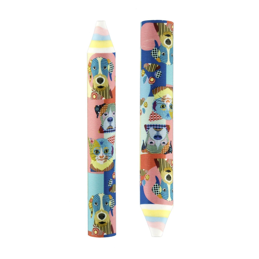 Su forma de lápiz las hace muy cómodas de sujetar. Son flexibles y están recubiertas con un protector plastificado y decorado con un colorido estampado de mosaico.