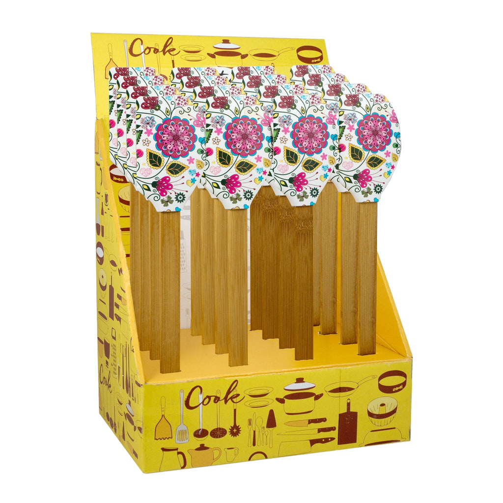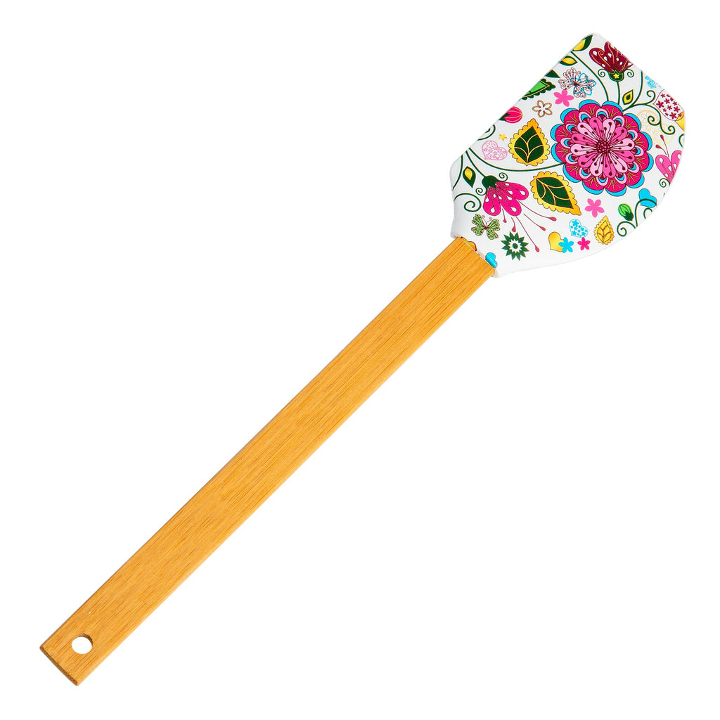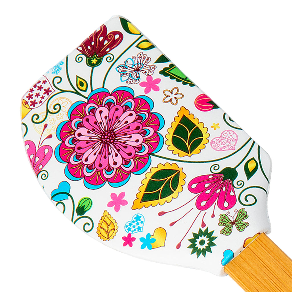 Espátula de cocina tipo lengua de gato de la colección Printemps de Javier. Está fabricada en silicona con mango de bambú, materiales muy resistentes, por lo que es un utensilio perfecto para tu día a día.