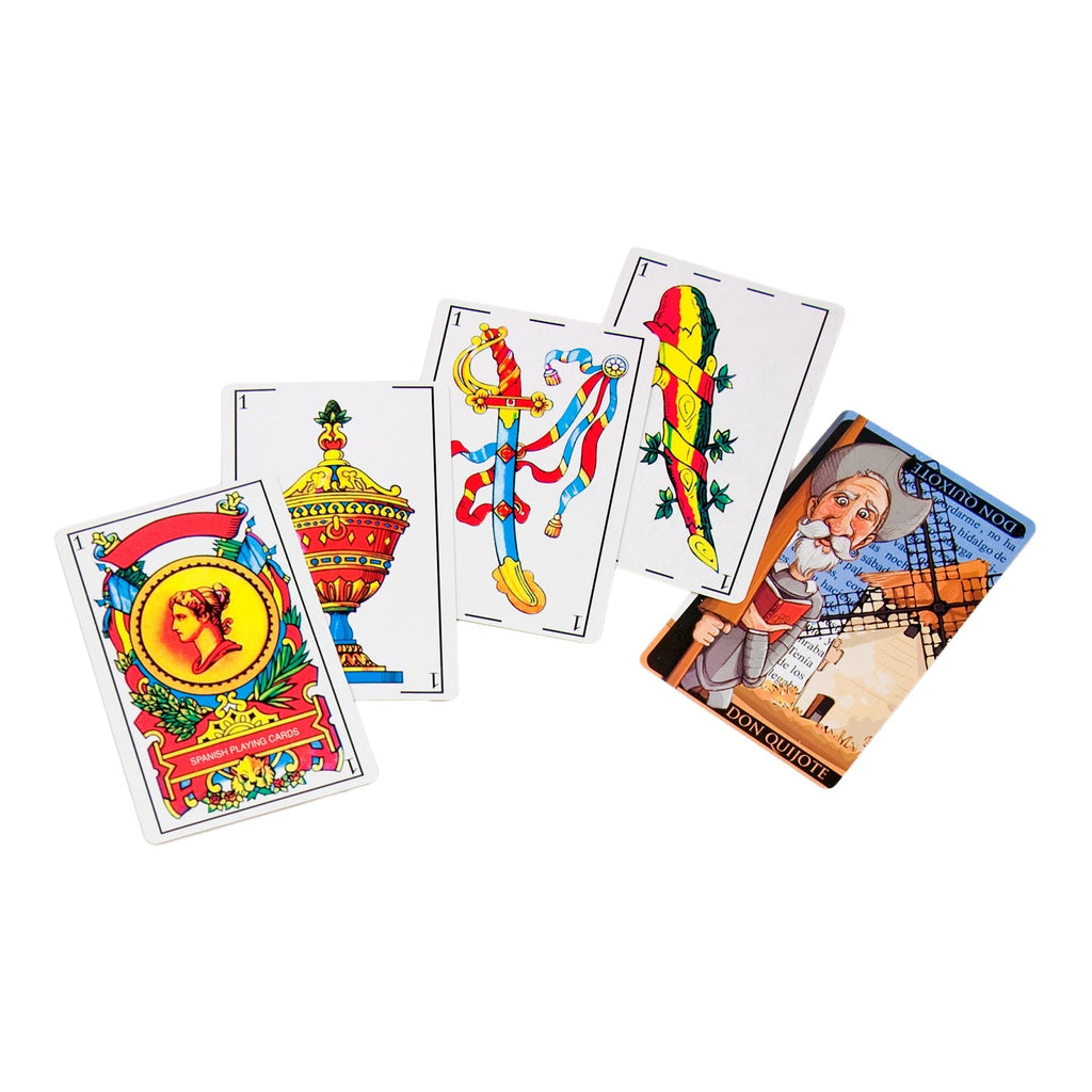 Baraja de cartas española de la colección Quijote de Javier con un diseño exclusivo en el reverso. Está conformada por 48 cartas españolas plastificadas para asegurar una mayor durabilidad y 2 cartas comodín.