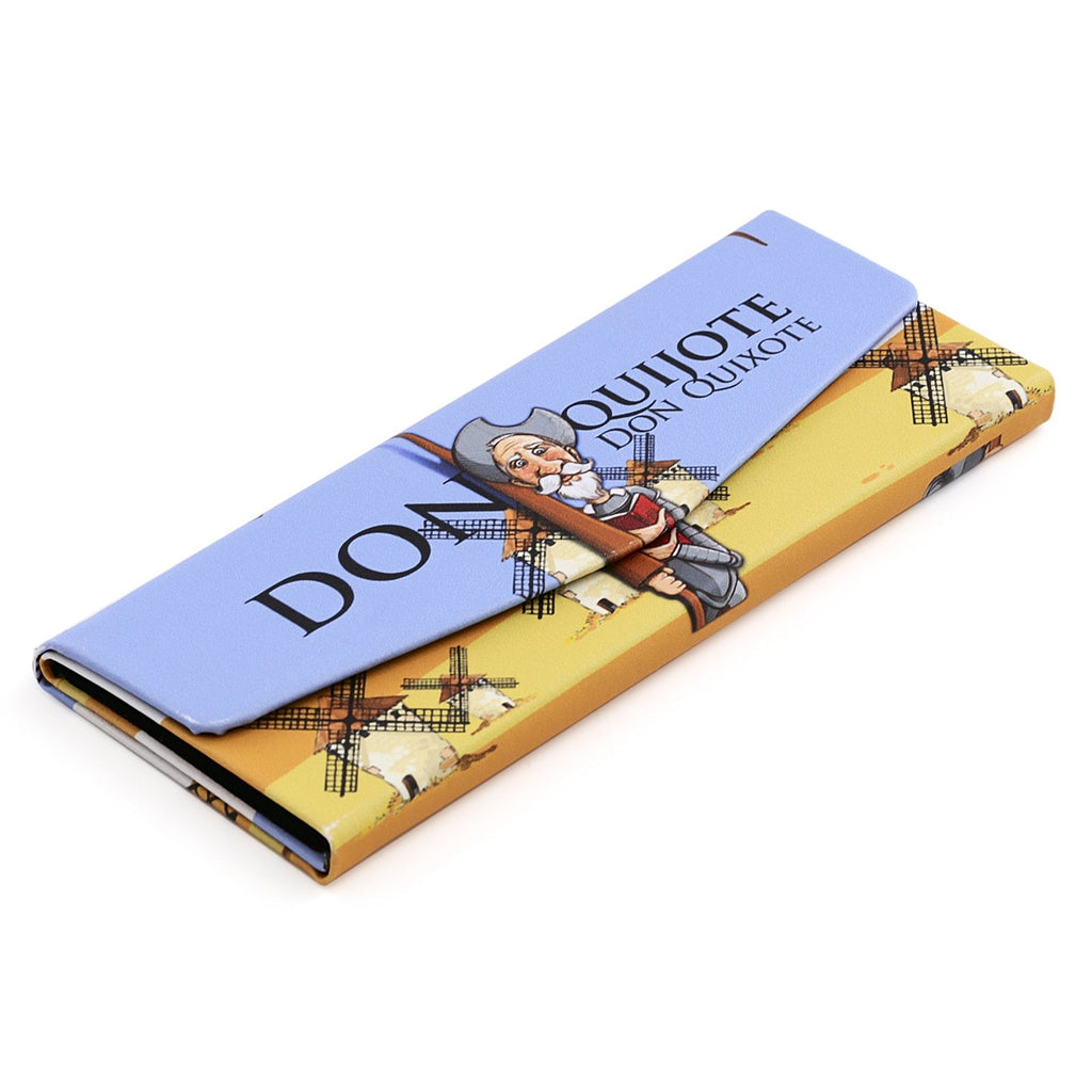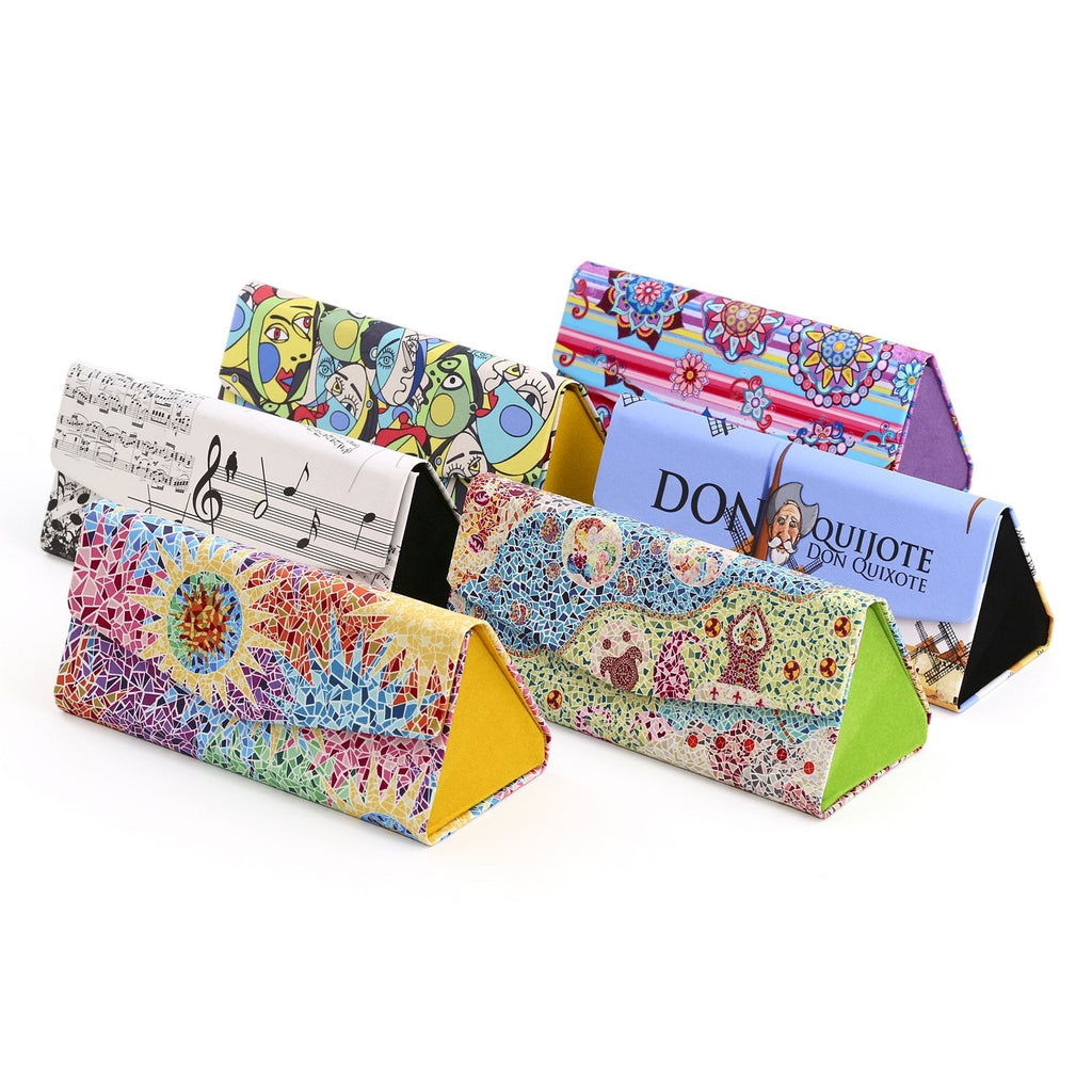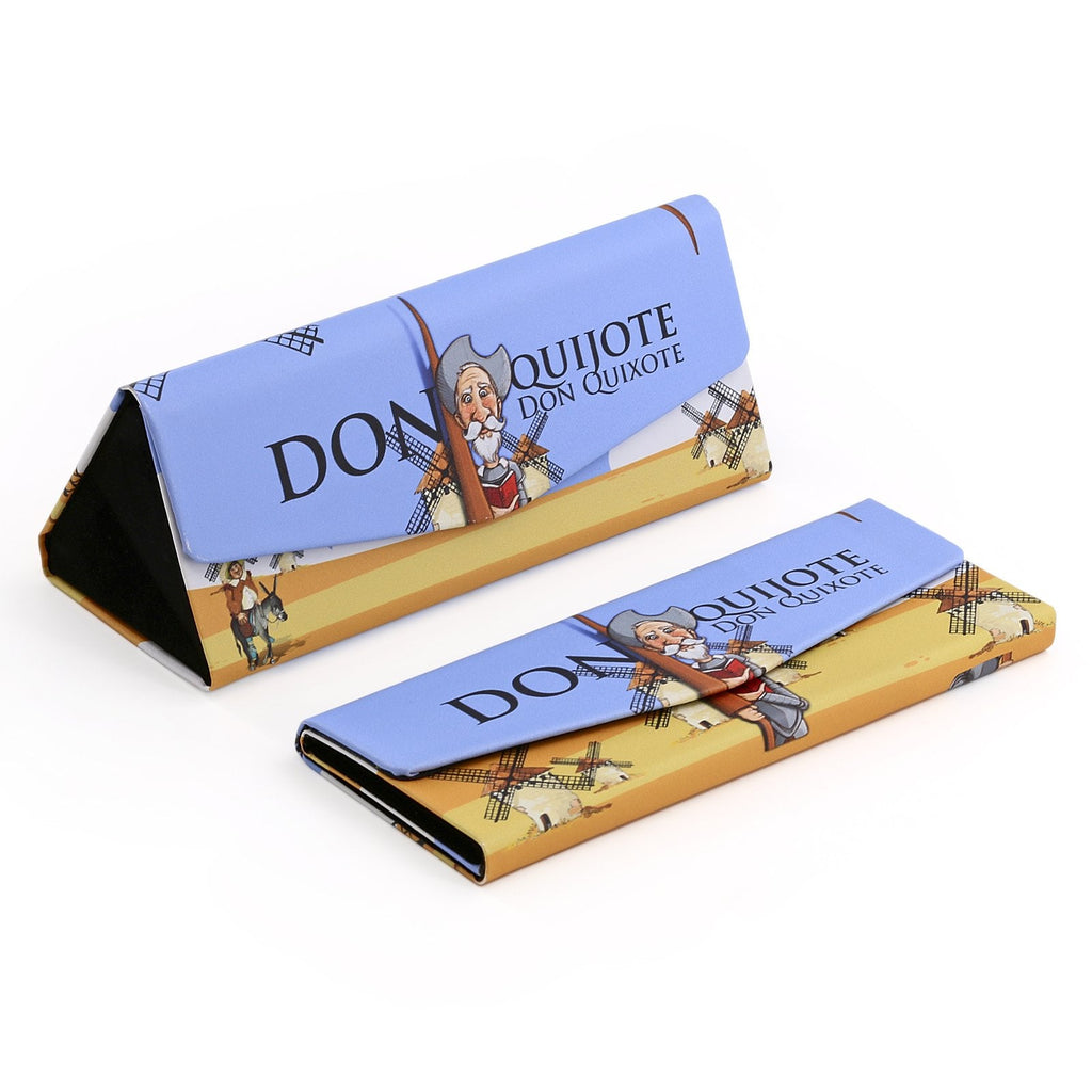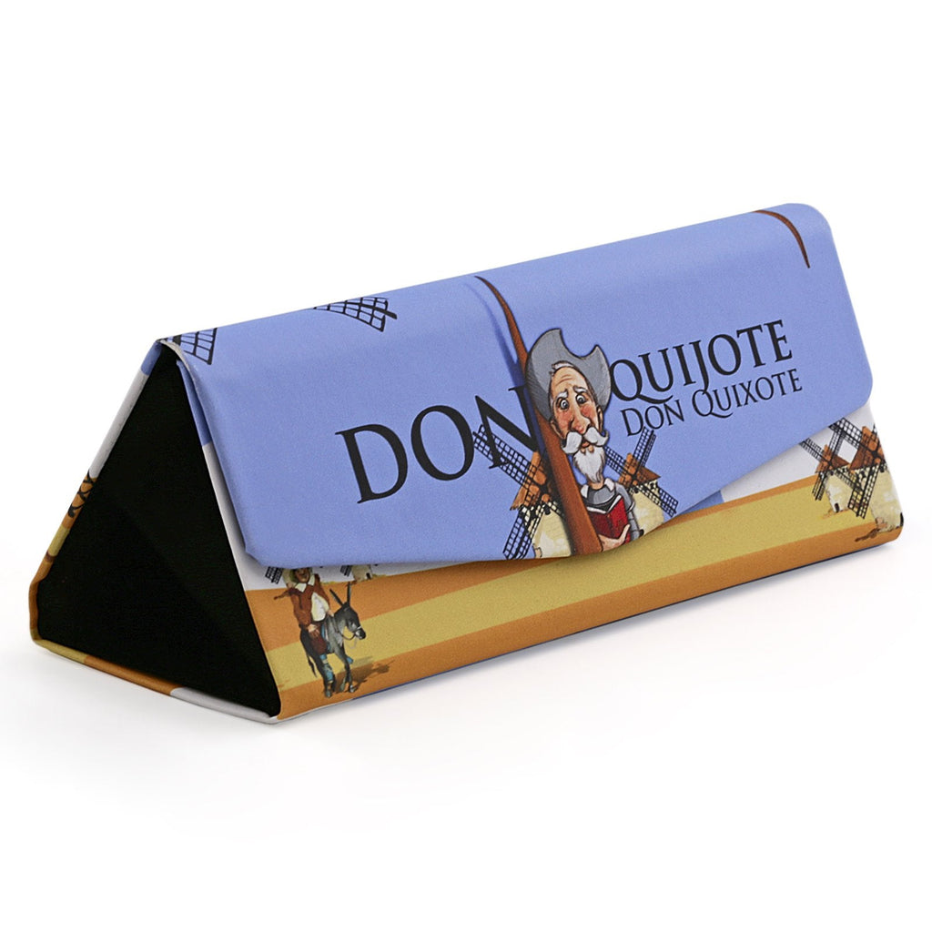 Funda para gafas plegable de la colección Quijote de Javier con un diseño en formato triangular con cierre magnético. Ideal para que puedas llevar tus gafas siempre protegidas a cualquier lugar.