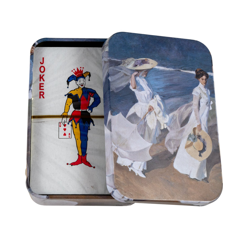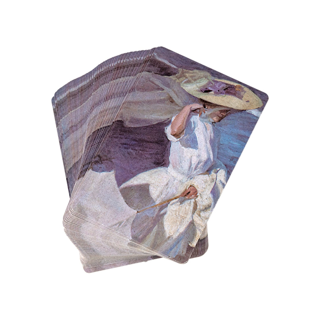 Baraja de Poker de la colección Señoras Playa de Javier con un diseño exclusivo en el reverso. Está conformada por 52 cartas inglesas plastificadas para asegurar una mayor durabilidad y 2 cartas comodín.